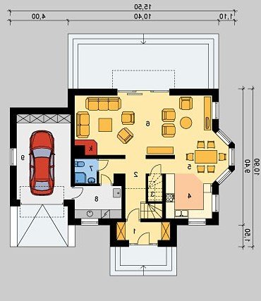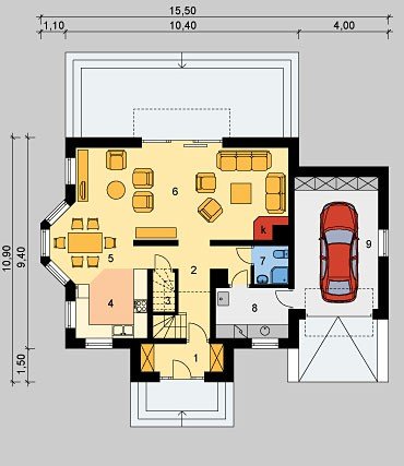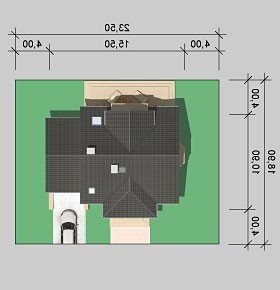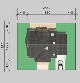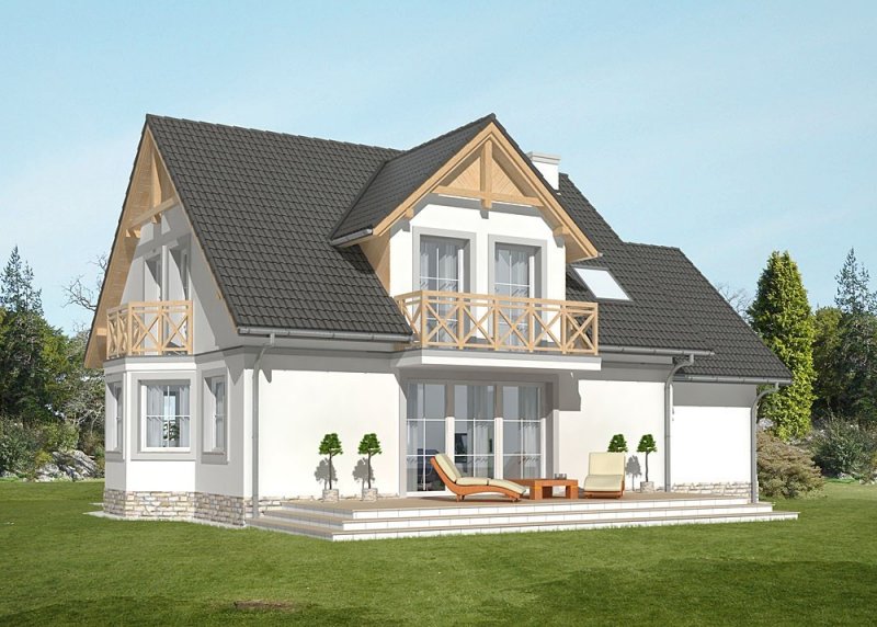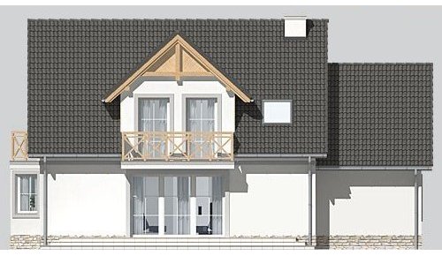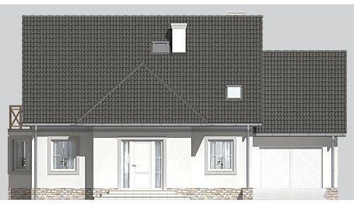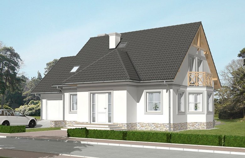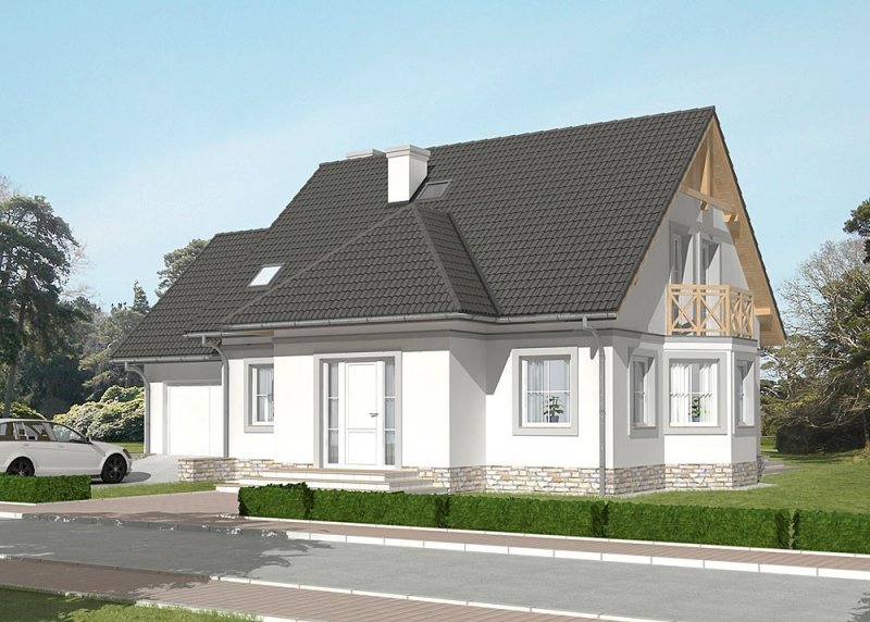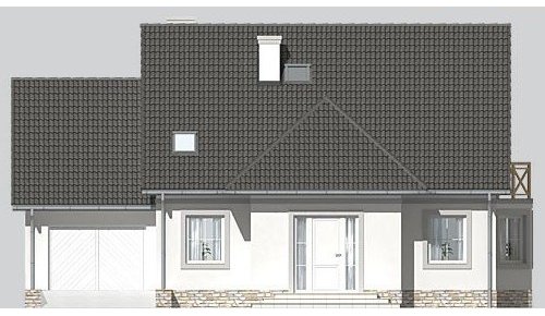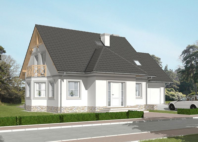 Dom jednorodzinny, parterowy z poddaszem użytkowym i jednostanowiskowym garażem.