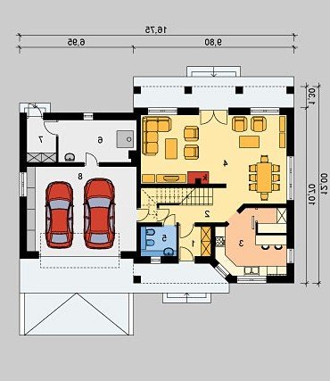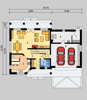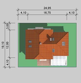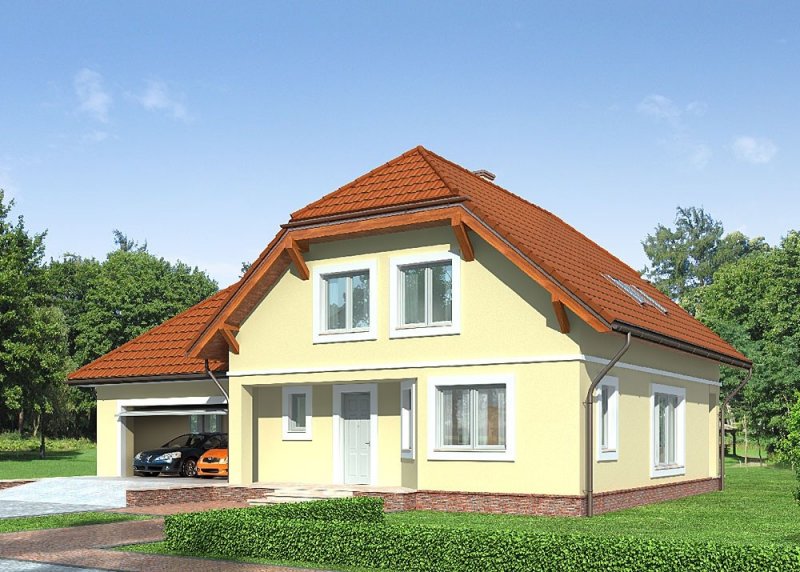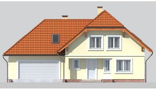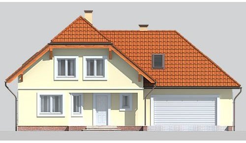 Dom jednorodzinny, parterowy z poddaszem użytkowym oraz dwustanowiskowym garażem.
