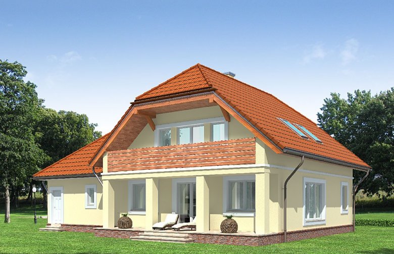- Pokrycie dachu: dachówką ceramiczną 'Koramic' firmy 'Wienerberger'