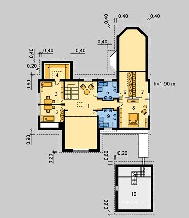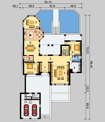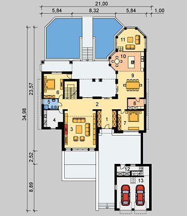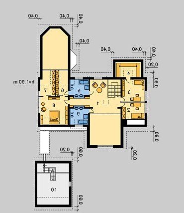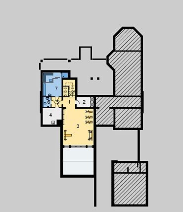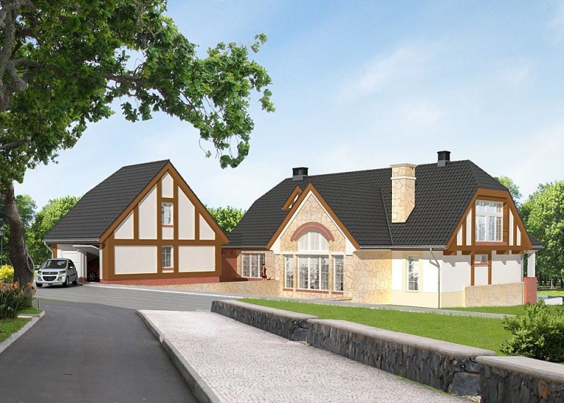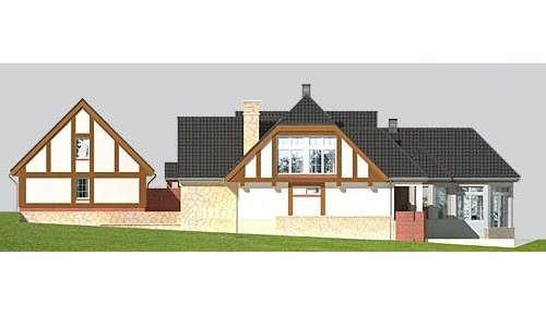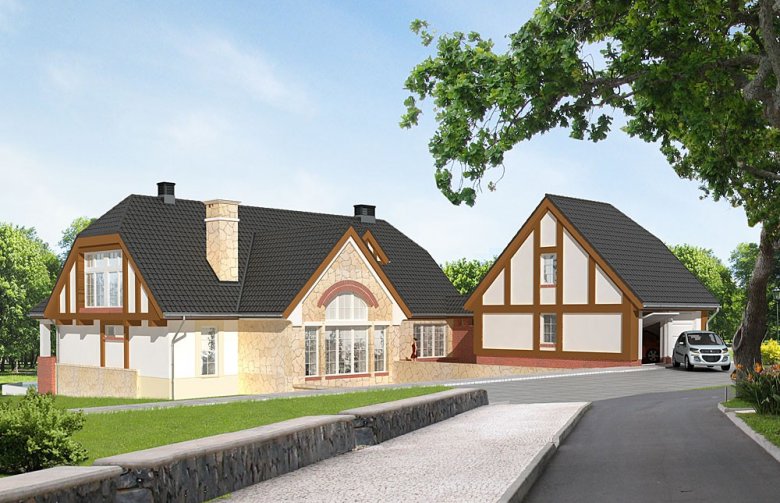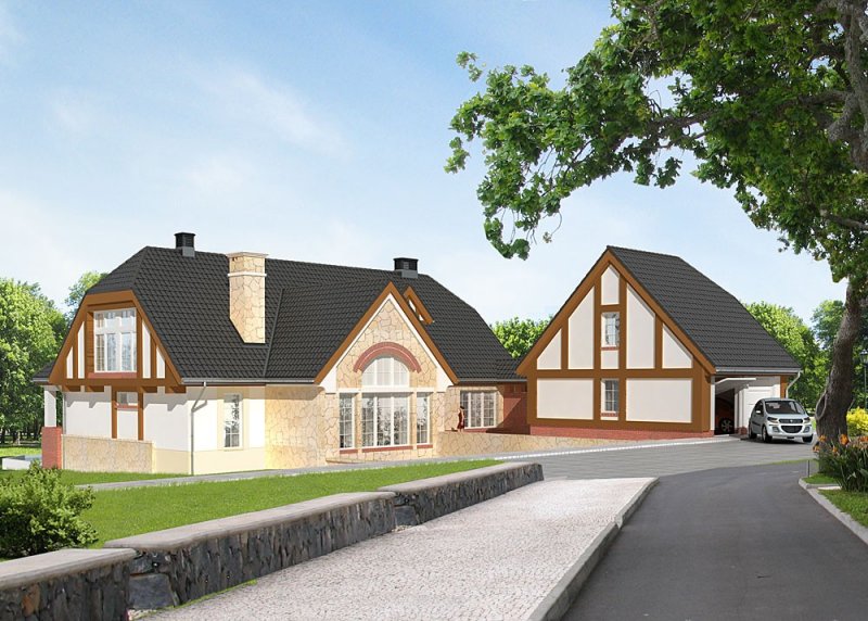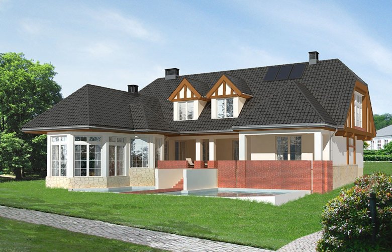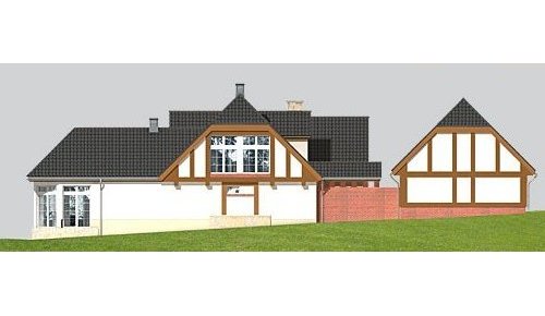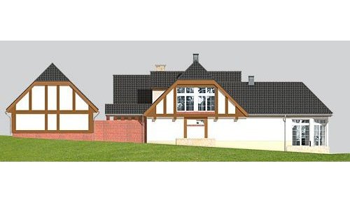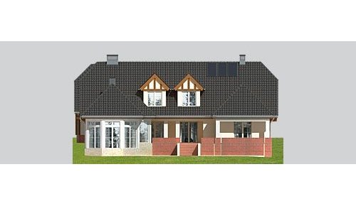 Dom jednorodzinny, parterowy z poddaszem użytkowym, częściowym podpiwniczeniem oraz wolnostojącym garażem dwustanowiskowym.