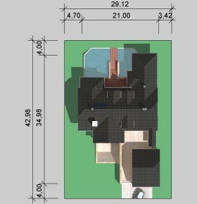 - Pokrycie dachu: dachówką ceramiczną 'Koramic' firmy 'Wienerberger'