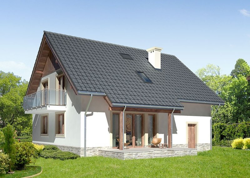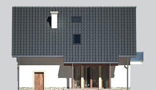 - Elewacje: wykończone tynkiem mineralnym, cokoły wykończone płytkami kamiennymi