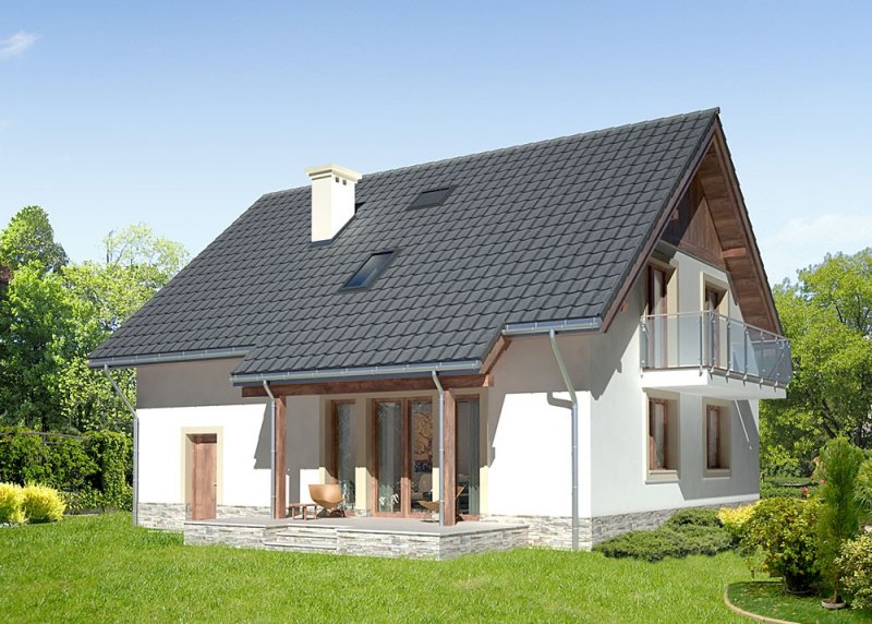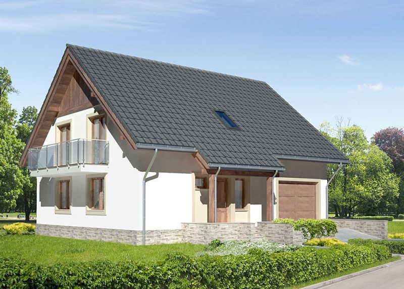 Dom jednorodzinny, parterowy, podpiwniczony, z poddaszem użytkowym i jednostanowiskowym garażem.