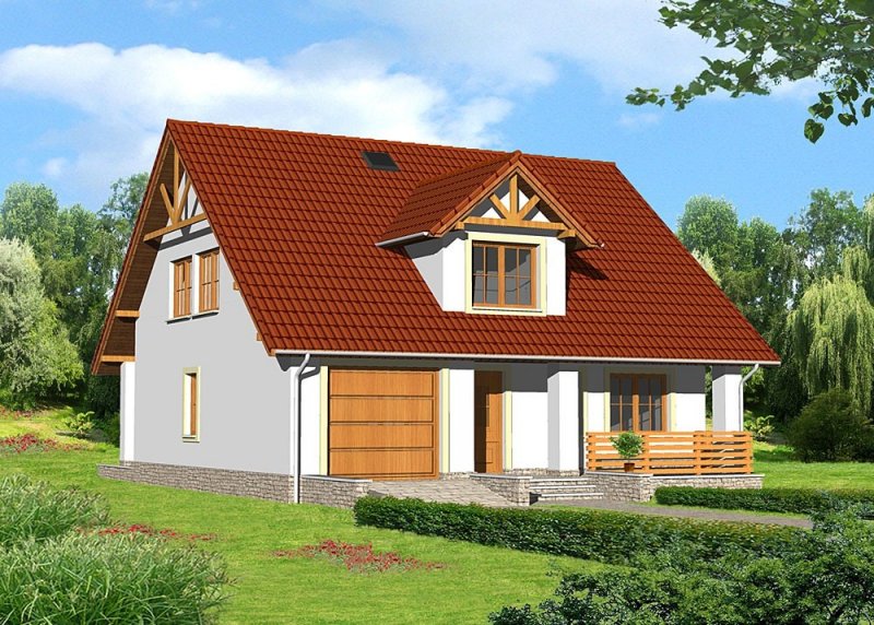 Dom jednorodzinny, parterowy z poddaszem użytkowym oraz jednostanowiskowym garażem.