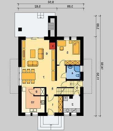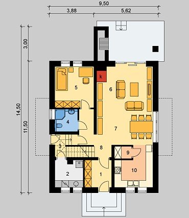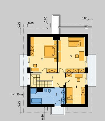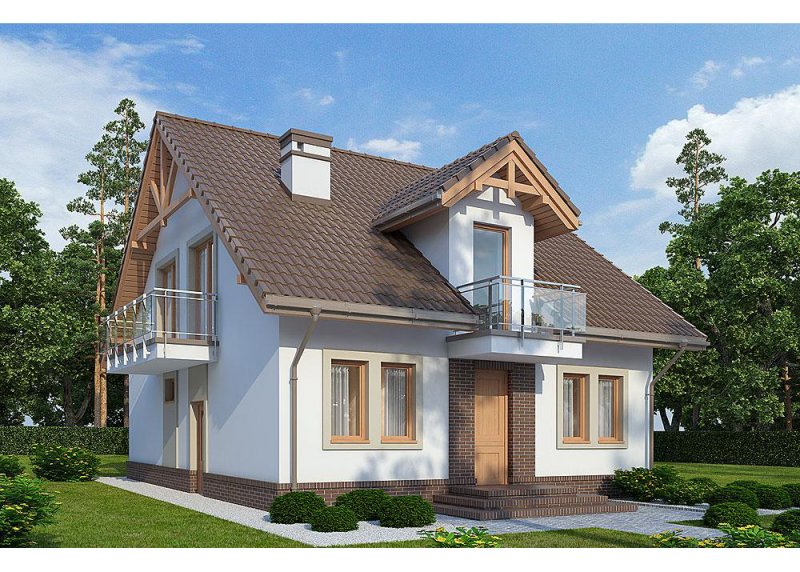 Dom jednorodzinny, parterowy, z poddaszem użytkowym, niepodpiwniczony.