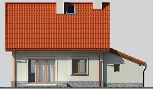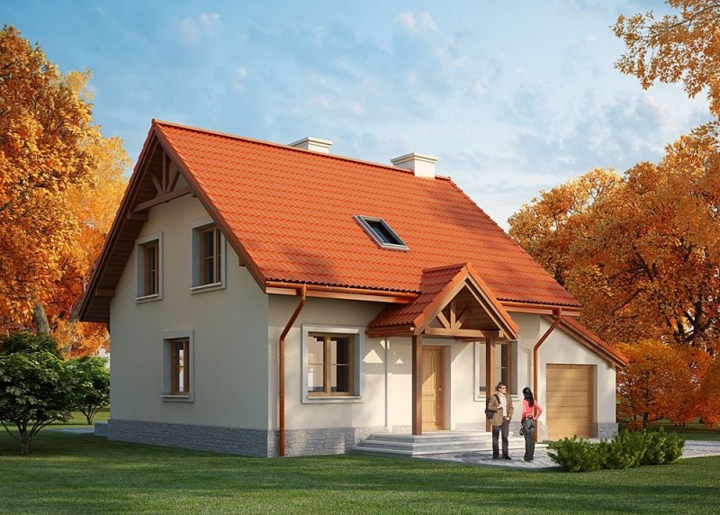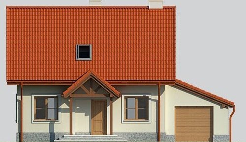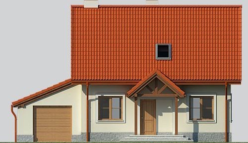 Dom jednorodzinny, parterowy, z poddaszem użytkowym i jednostanowiskowym garażem.