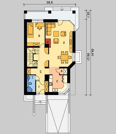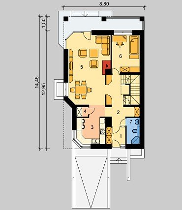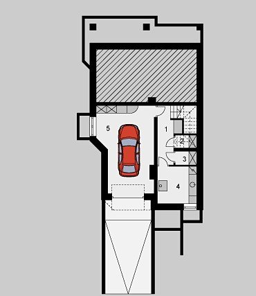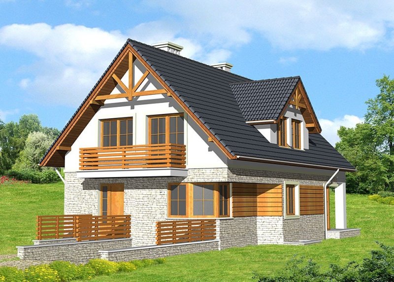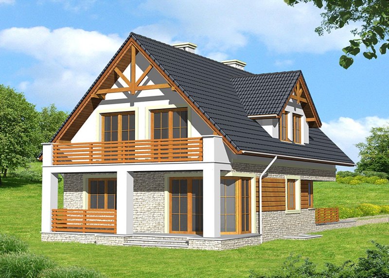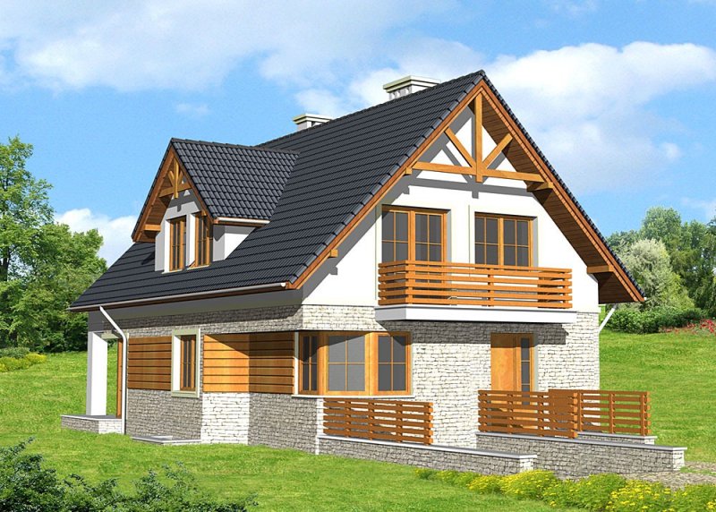 Dom jednorodzinny, parterowy z poddaszem użytkowym oraz jednostanowiskowym garażem.