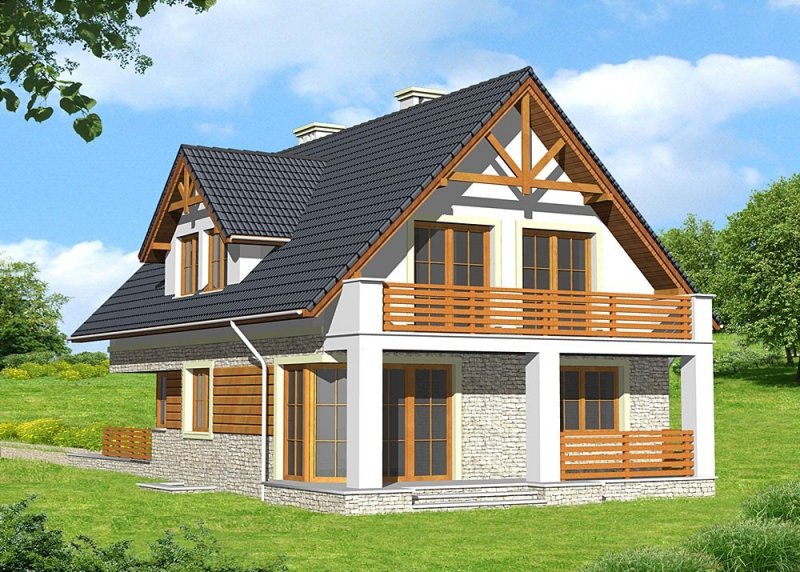 - Elewacje: wykończone tynkiem mineralnym, okół obłożony płytkami kamiennymi