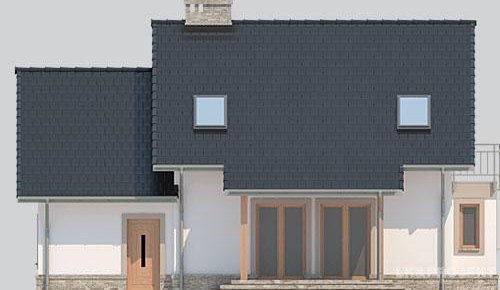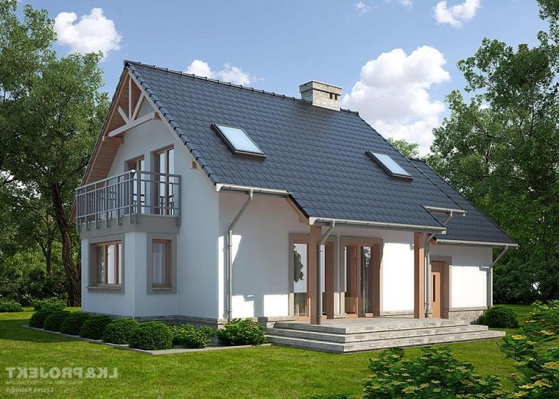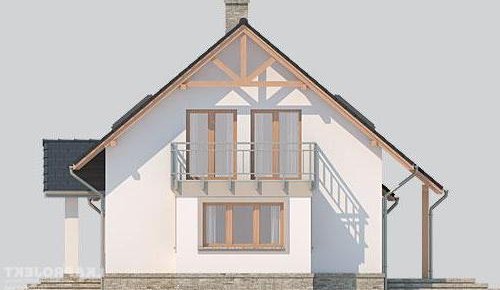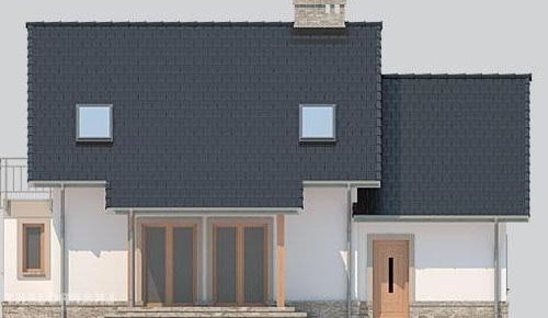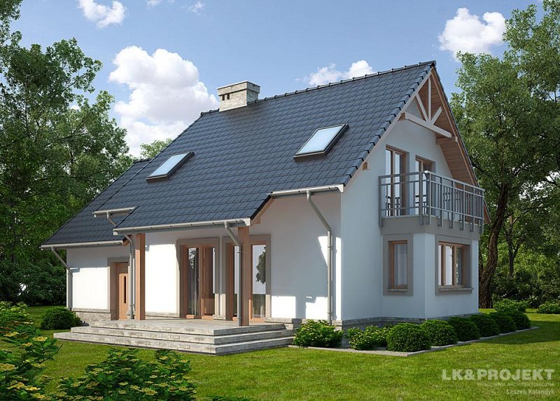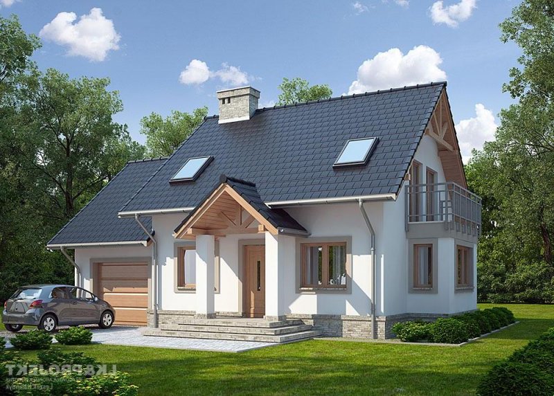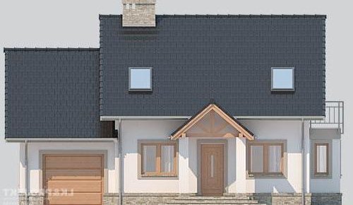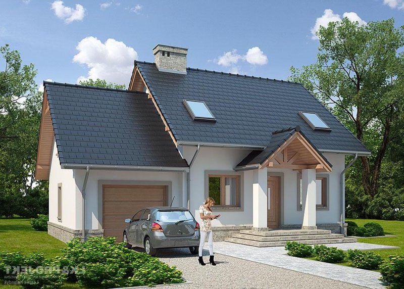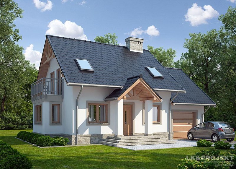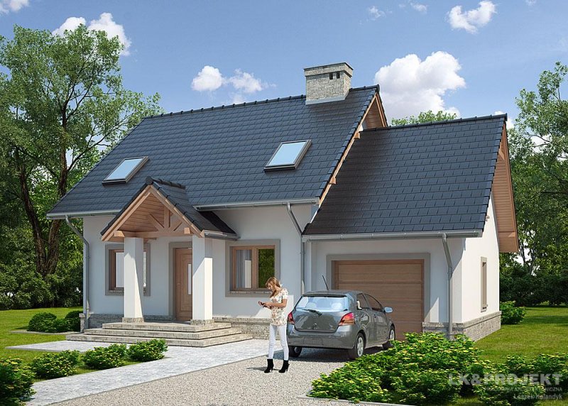 Dom jednorodzinny, parterowy, z poddaszem użytkowym i jednostanowiskowym garażem.