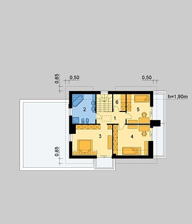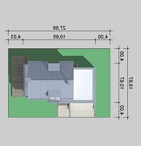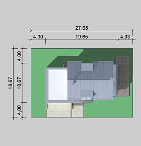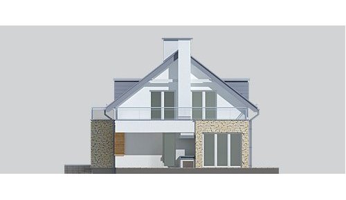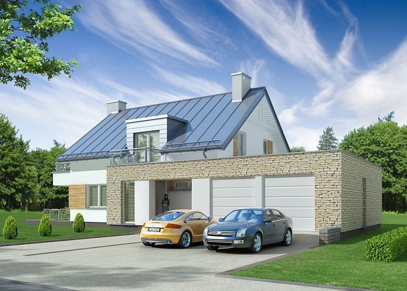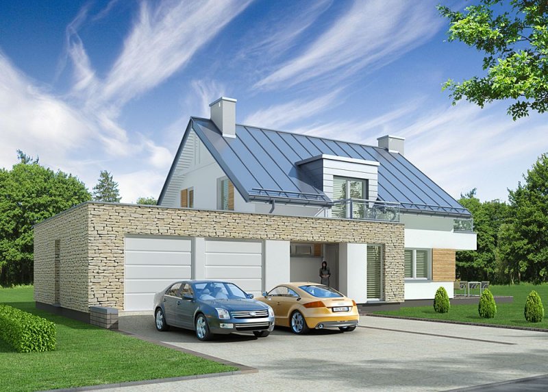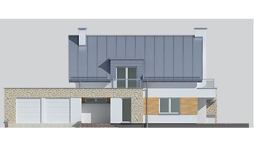 Dom jednorodzinny, parterowy, z poddaszem użytkowym oraz dwustanowiskowym garażem.