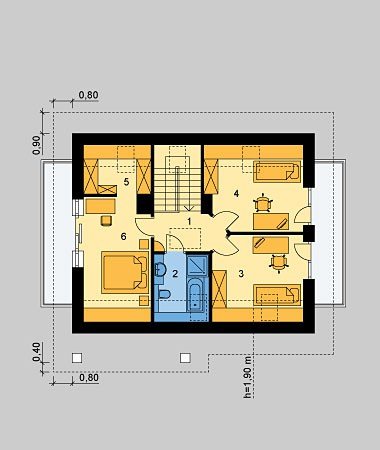 Dom jednorodzinny, parterowy z poddaszem użytkowym.