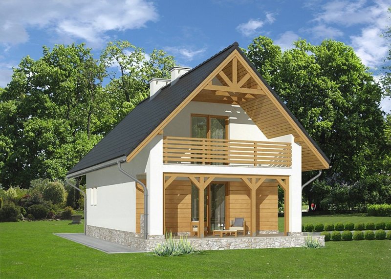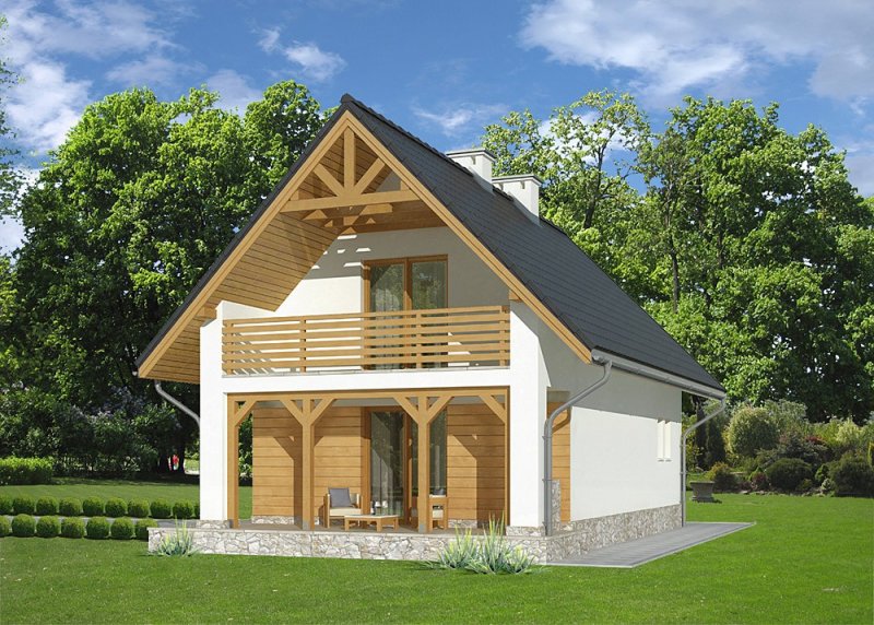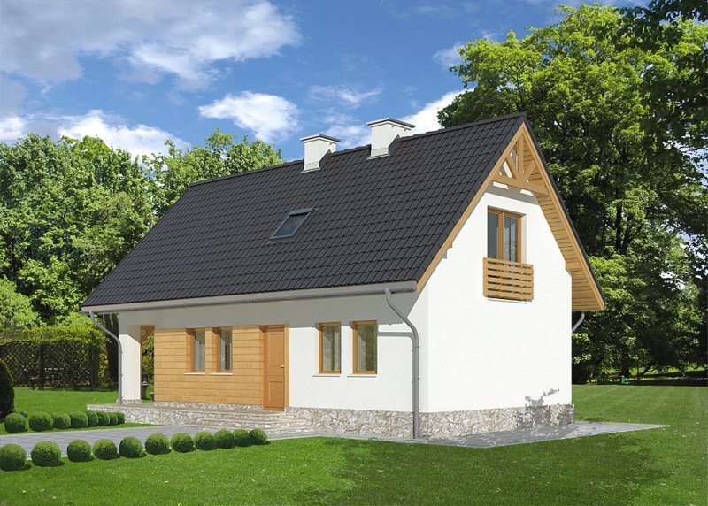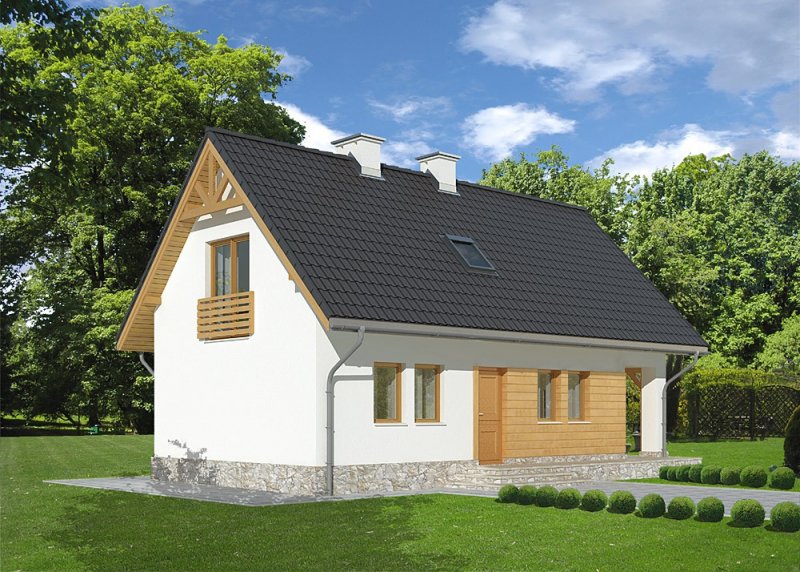 - Elewacje: tynk silikonowy, na fragmentach ścian deski elewacyjne, cokół obłożony kamieniem naturalnym łupanym