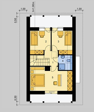 Dom jednorodzinny, parterowy z poddaszem użytkowym.