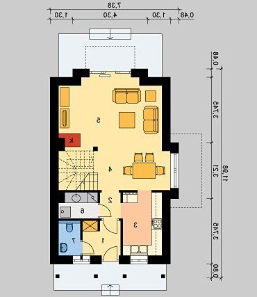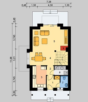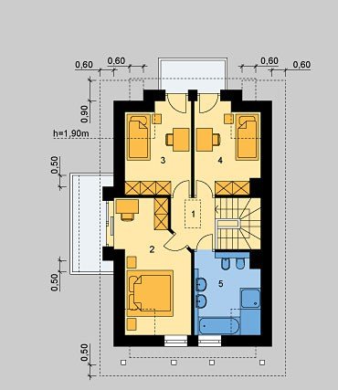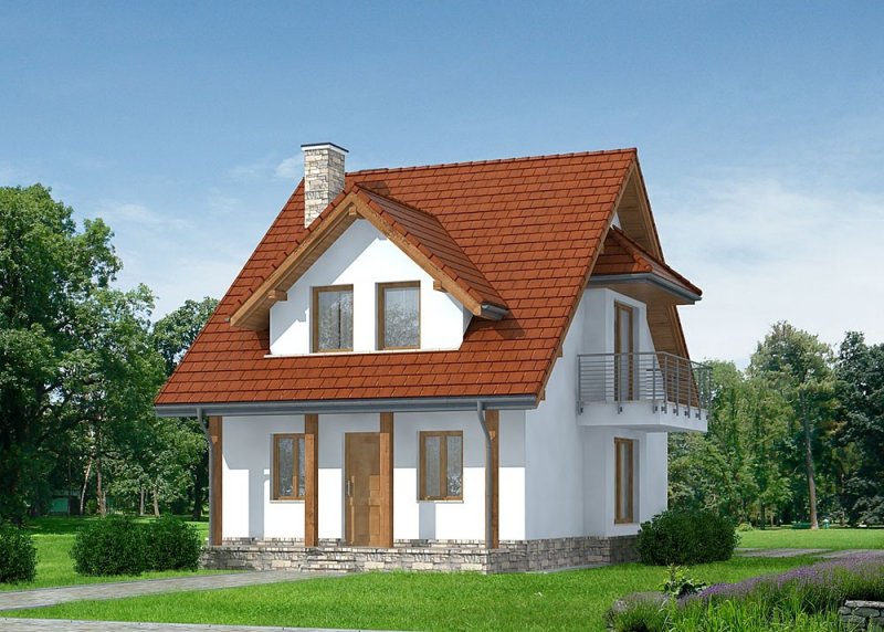 Dom jednorodzinny parterowy, niepodpiwniczony, z poddaszem użytkowym.
