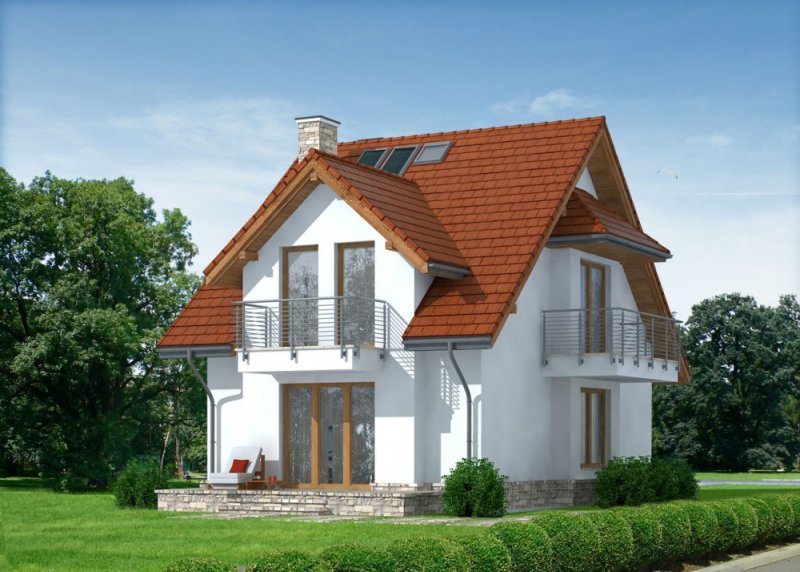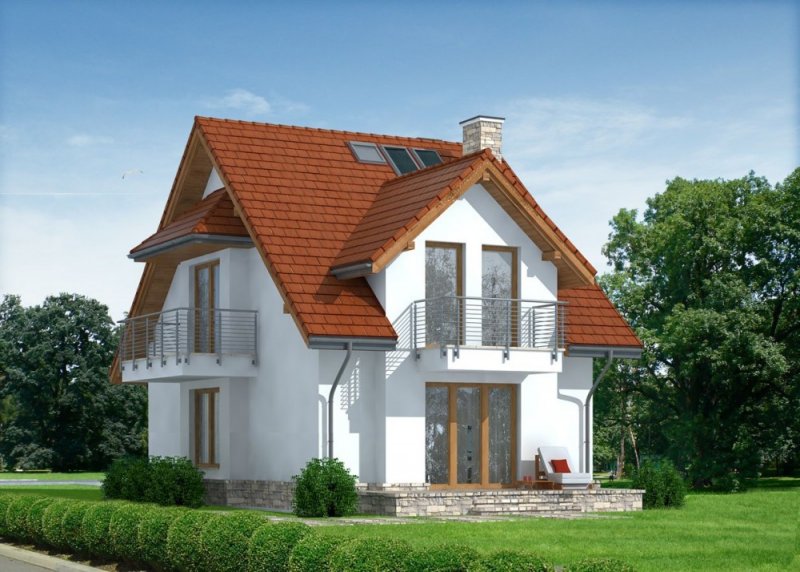- Pokrycie dachu: dachówka ceramiczna Koramic Actua firmy Wienerberger