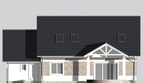 - Elewacje: tynk silikonowy,na fragmentach ścian kamień elewacyjny, cokół obłożony kamieniem elewacyjnym