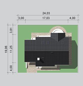 - Min. wymiary działki 24.03x19.06 m