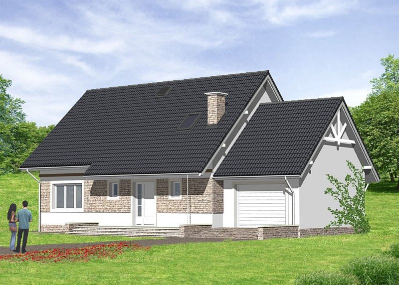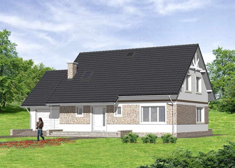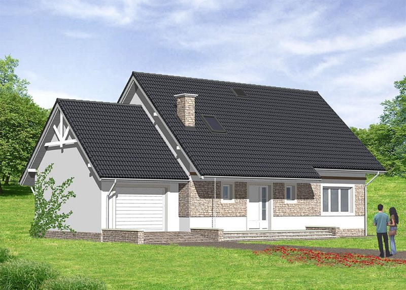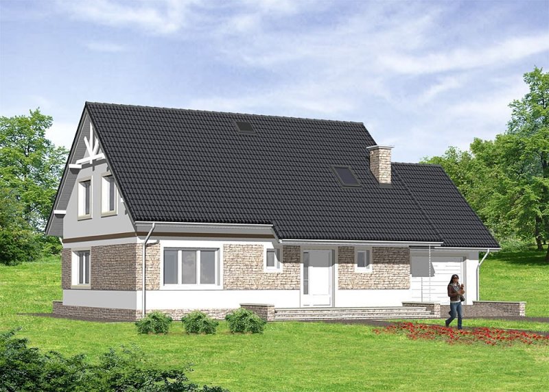 Dom jednorodzinny, parterowy z poddaszem użytkowy i garażem.