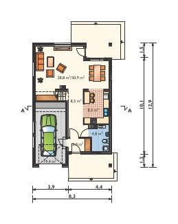 - pokój dzienny 28.8 m2