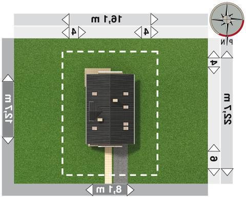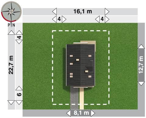 - Min. wymiary działki 22.70x16.10 m