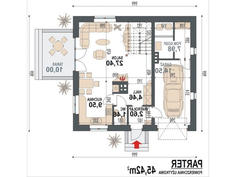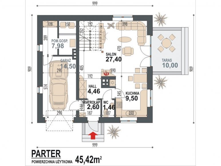 Projekt Lolek N to nowoczesna wersja klasycznego projektu Lolek - jednego z najlepiej sprzedających się domów. Wychodząc na przeciw obecnym trendom zmieniliśmy w domu elewacje oraz nieco powiększyliśmy niektóre otwory okienne. Dom stał się modny pozostając jednocześnie prostym i tanim w budowie, a za to zawsze był ceniony. Sprawdzone rozwiązania we wnętrzu domu pozostały tak samo funkcjonalne, jak w wersji tradycyjnej i zapewniają komfortowe warunki mieszkalne dla czteroosobowej rodziny. Strefa dzienna znajduje się na parterze, zaś pomieszczenia sypialne na poddaszu domu. Zaletą domu jest duże pomieszczenie gospodarcze.