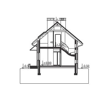 Longinus Sto wyróżnia się smukłą sylwetką, bo, aby umożliwić wygodne wykorzystanie poddasza, zaprojektowano stosunkowo wysokie ścianki kolankowe (1,2m). Na uwagę w tym projekcie zasługuje bardzo nowocześnie pomyślana przestrzeń życia rodzinnego na parterze. Na wąskim, niewielkim rzucie udało się rozmieścić ustawną strefę dzienną, która mając otwarty charakter zachowuje czytelny podział na hol, kuchnię i jadalnię z salonikiem. Mimo niewielkiej powierzchni Longinus Sto dysponuje także wygodną sienią z głęboką szafą ubraniową, dodatkowym pokojem z garderobą na parterze oraz pralnią.