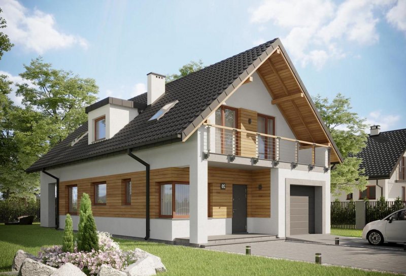 Elewacje: tynki firmy SICHER BAUTECHNIK, częściowo deskowanie;