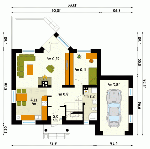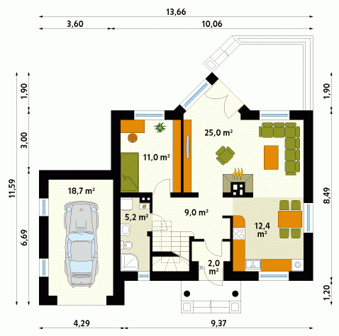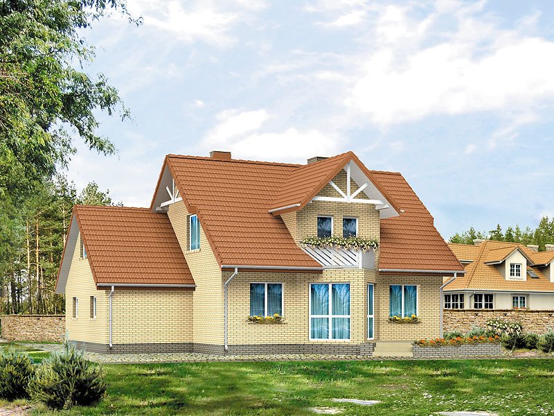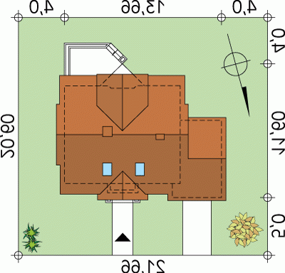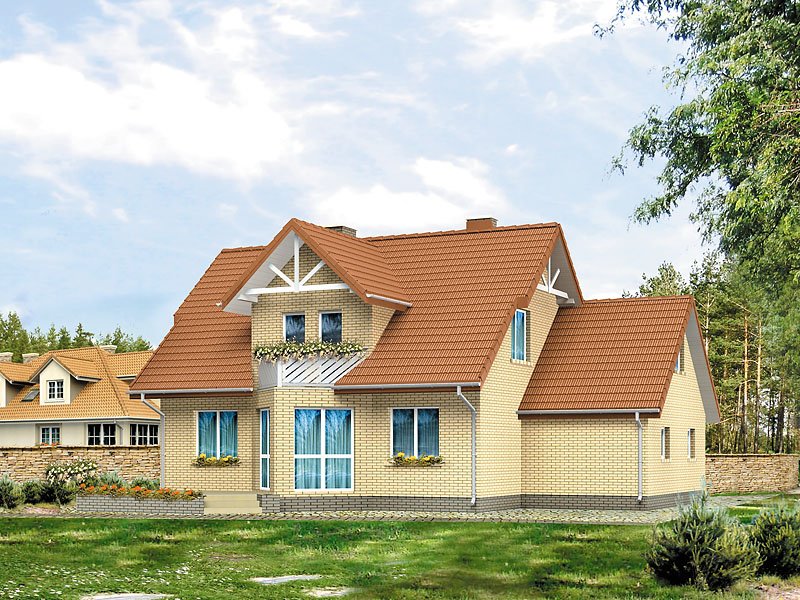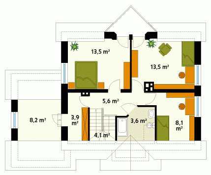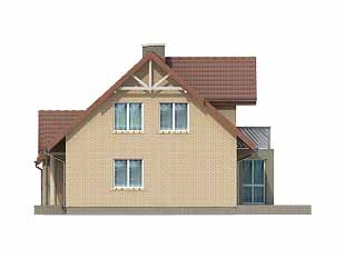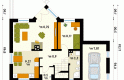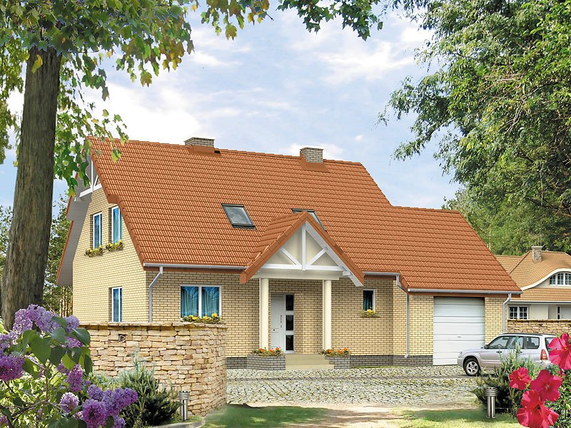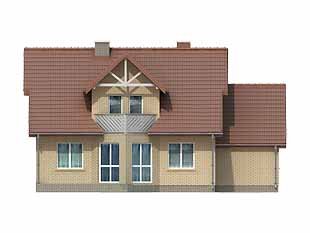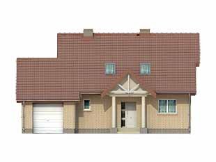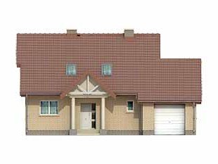 Dom jednorodzinny, parterowy z użytkowym poddaszem, niepodpiwniczony. Mały, zwarty, bardzo wygodny dom dla 4 osób. Na parterze dodatkowy pokój – gabinet lub pokój seniora, przestronna kuchnia z jadalnią oraz pokój dzienny z wykuszem przy tarasie. Na poddaszu sypialnie z niewielkim balkonem i garderobą.