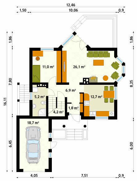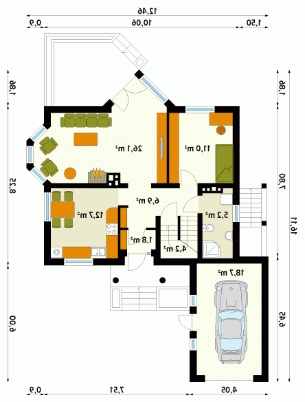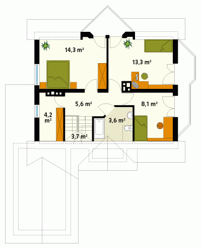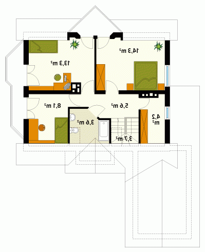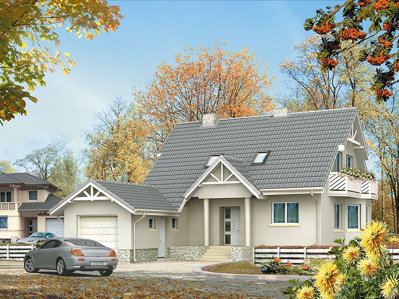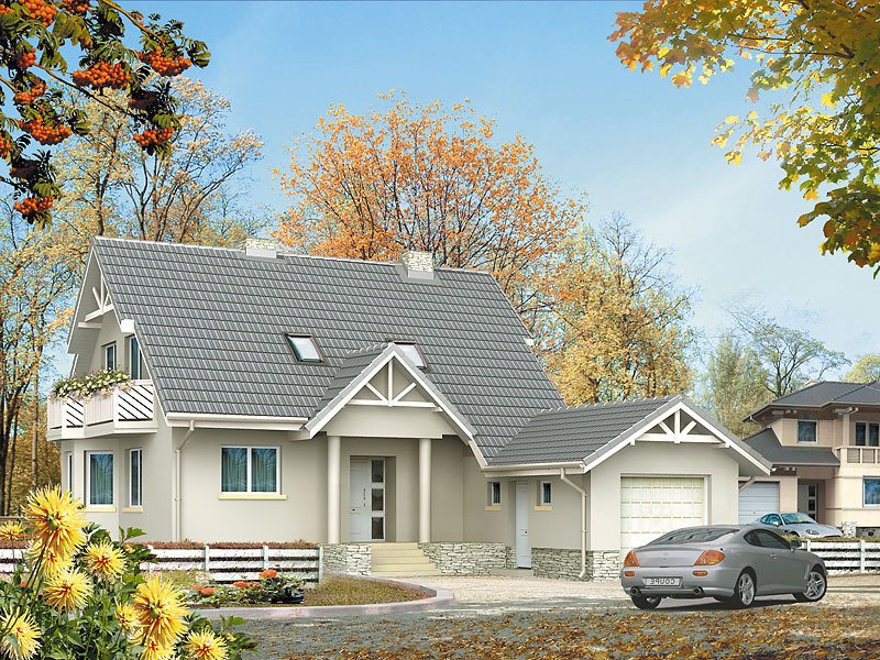 Dom jednorodzinny, parterowy z użytkowym poddaszem, podpiwniczony. Mały, zwarty, bardzo wygodny dom dla 4 osób. Na parterze dodatkowy pokój, przestronna kuchnia z jadalnią oraz pokój dzienny. Na poddaszu sypialnie z balkonem i garderobą.