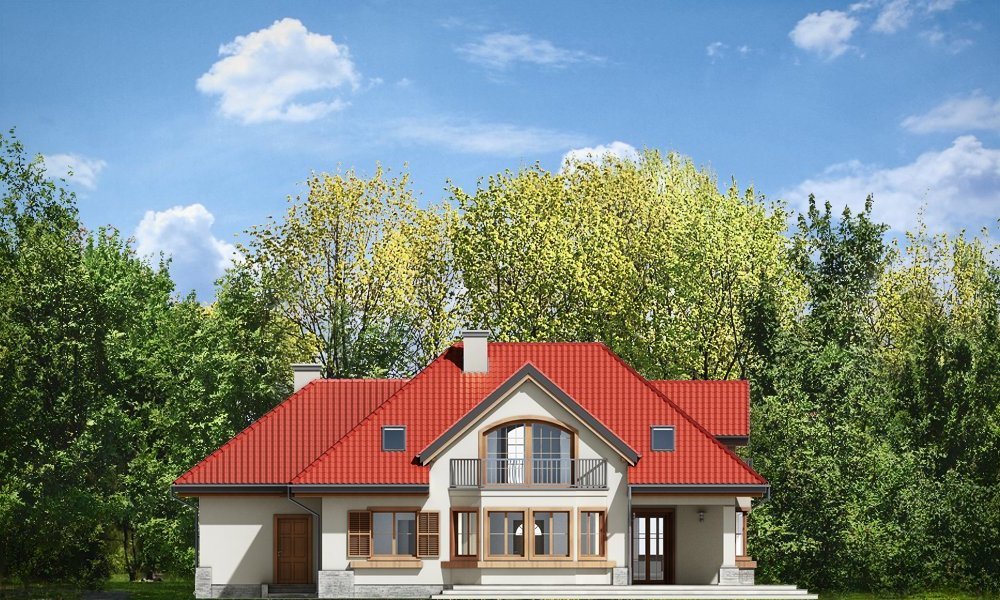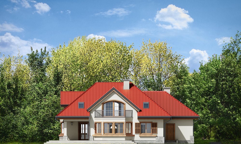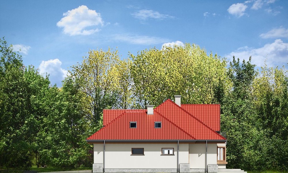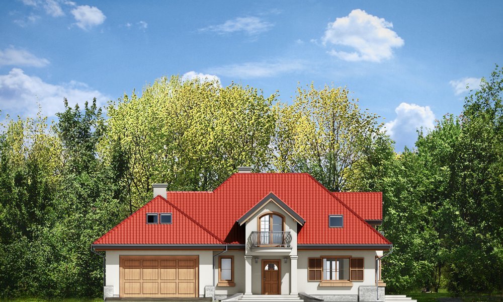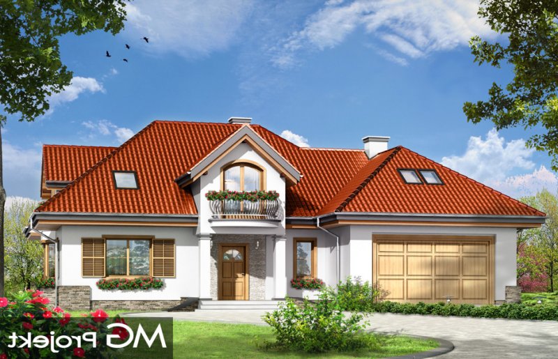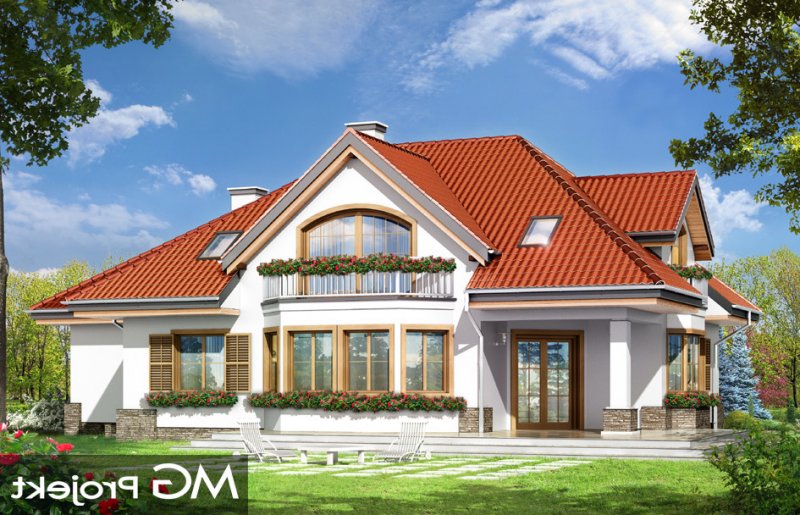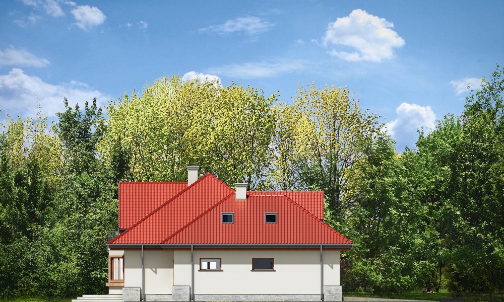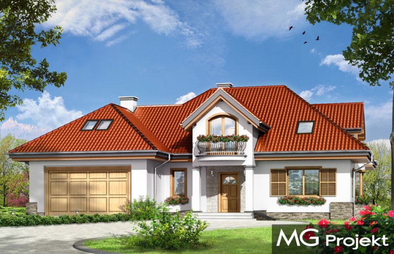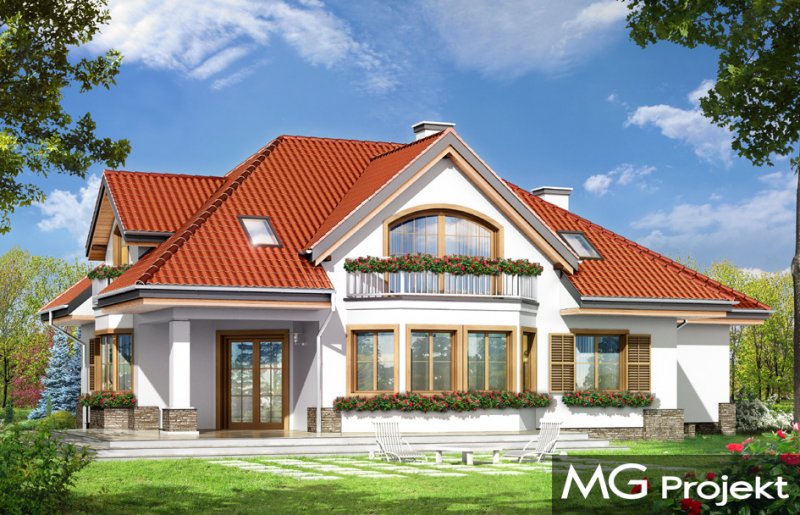 Maja 4 to kolejny wariant wersji popularnego projektu Maja. Projekt został powiększony w stosunku do swoich poprzedników. Budynek został poszerzony, podniesione zostały też ściany kolankowe na poddaszu, co ograniczyło zasięg skosów w sypialniach. Dom zaprojektowany został z myślą o rodzinie cztero-sześcioosobowej. Główna prostokątna bryła budynku z dobudowaną częścią garażową przekryta jest wielospadowym dachem, z lukarnami na poddaszu. Architektonicznie dom utrzymano w stylistyce typowego "polskiego dachowca", urozmaiconego wieloma ozdobnymi detalami, jak wykusze, podcienie z kolumnami, lukarny z balkonami, czy łukowe okna piętra. Zwrócić uwagą należy również na otwarcie domu na ogród - duże przeszklenia salonu, bardzo ładny taras, oraz praktyczny podcień powodują, że ogród staje się przedłużeniem wnętrza. Maja 4 to pomysł na bardzo wygodny i komfortowy dom, nawet dla licznej rodziny. Na parterze prócz części dziennej, na którą składają się: salon, jadalnia, hol i częściowo otwarta kuchnia, zaprojektowano również dodatkowy, niezależny pokój, oraz część techniczną domu z dwustanowiskowym garażem. Na poddaszu przewidziano cztery sypialnie i łazienki. Pracownia posiada projekt w wersji odbicia lustrzanego.