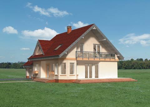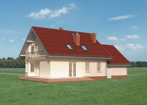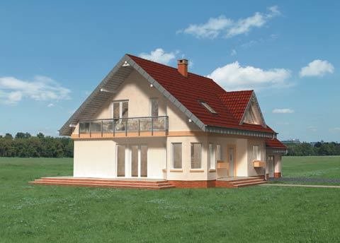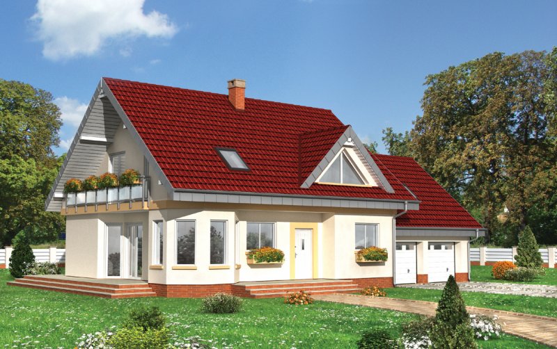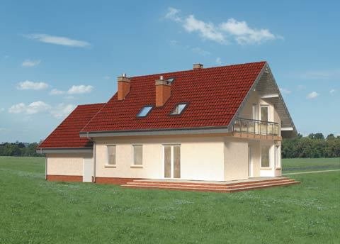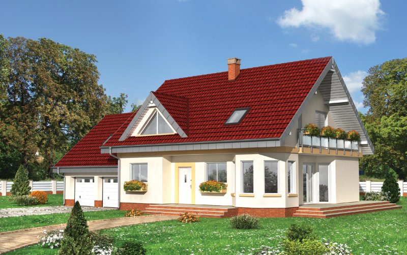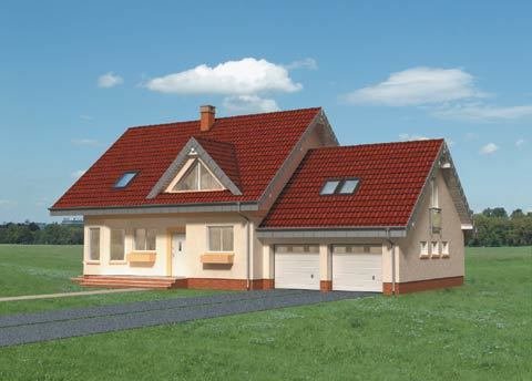 Dom parterowy, z użytkowym poddaszem, z garażem dwustanowiskowym.