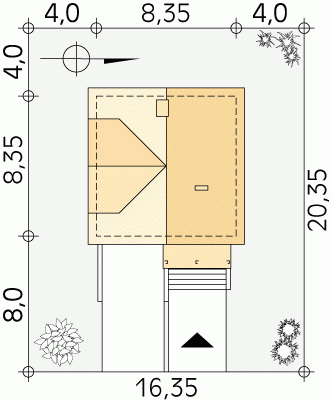 - Min. wymiary działki 16.35x20.35 m