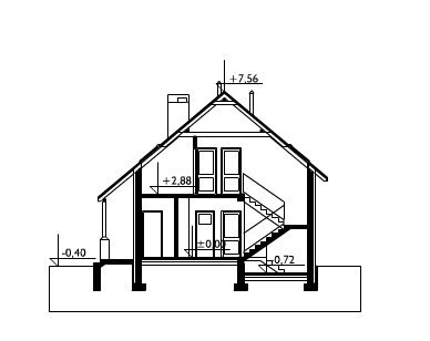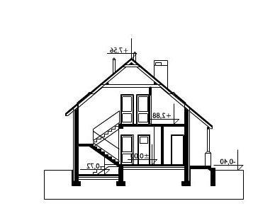 Na parterze znajduje się pokój dzienny, jadalnia, kuchnia, pokój, łazienka, kotłownia, schowek oraz garaż i pomieszczenie gospodarcze. Na poddaszu - przedpokój, 4 sypialnie, łazienka, w.c. i garderoba. Prosta bryła budynku przykryta dachem dwuspadowym o kącie nachylenia połaci 40°, urozmaicona podcieniami, balkonem i loggią.