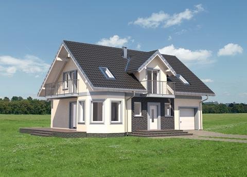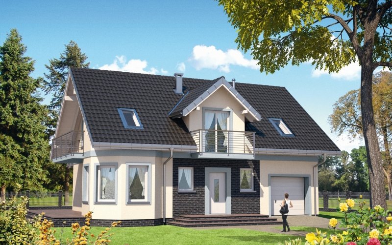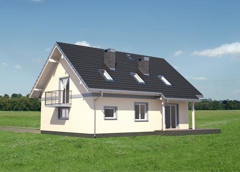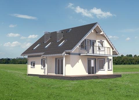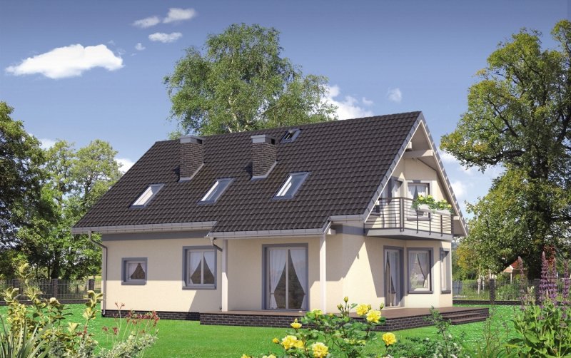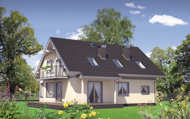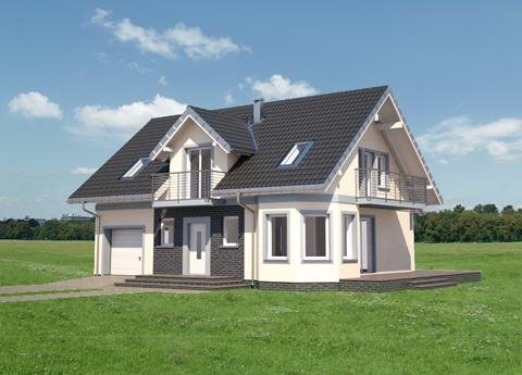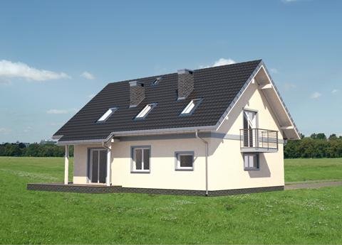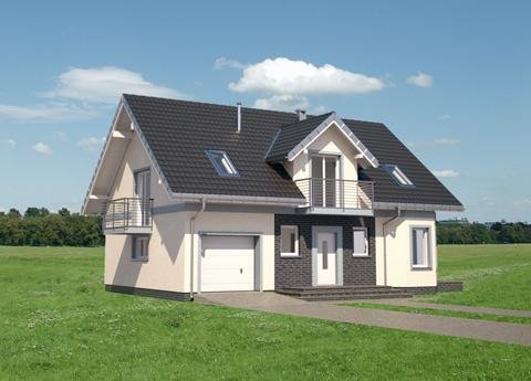 Mariola to wymarzona propozycja domu dla osób, które realizują swoje pierwsze plany mieszkaniowe Przemawia za tym zarówno powierzchnia użytkowa umożliwiająca tańszą budowę, jak i układ domu. Mariola należy do projektów domów z użytkowym poddaszem, połączonych ekonomicznie z garażem i kotłownią w jedną bryłę. Program funkcjonalny parteru tworzy kompletne mieszkanie dzięki łazience wkomponowanej w przestrzeń pod schodami i niewielkiemu gabinetowi. Na drugiej kondygnacji zaproponowano cztery sypialnie, łazienkę i garderobę – pomieszczenia te wykończyć można w drugim etapie. Ekonomiczne atuty projektu, idealnego docelowo dla 5-osobowej rodziny, podbijają niewątpliwe walory plastyczne bryły. Dekoracyjny ryzalit jadalni, lukarnę akcentującą fronton i balkony w ścianach szczytowych zaprojektowano lekko i nowocześnie.