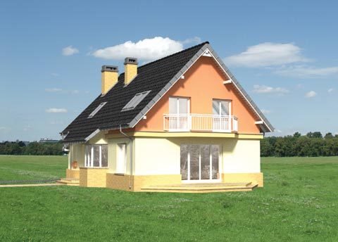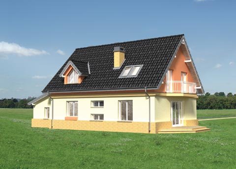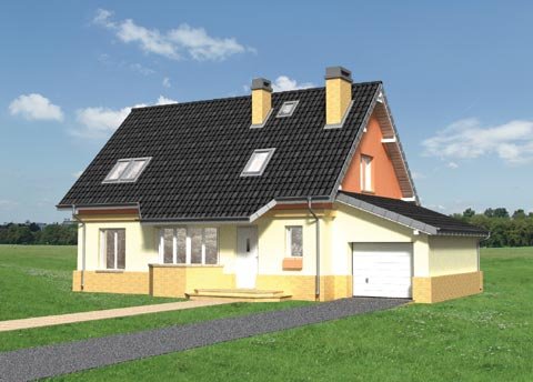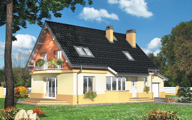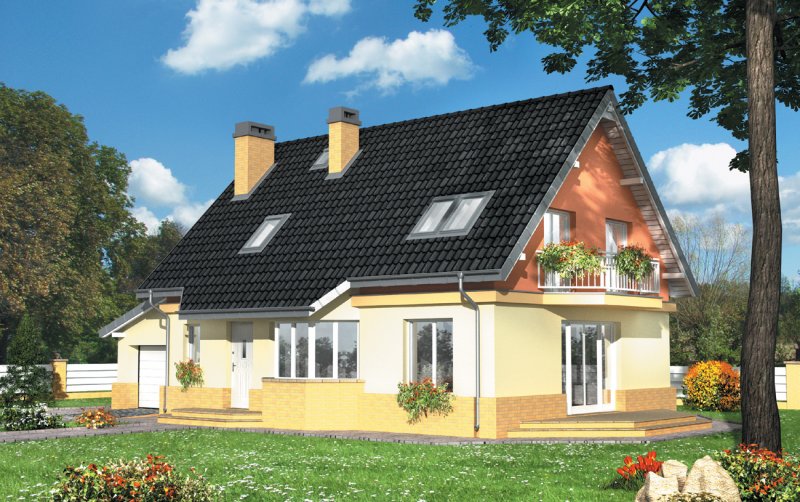 Dom parterowy, z użytkowym poddaszem, z garażem.