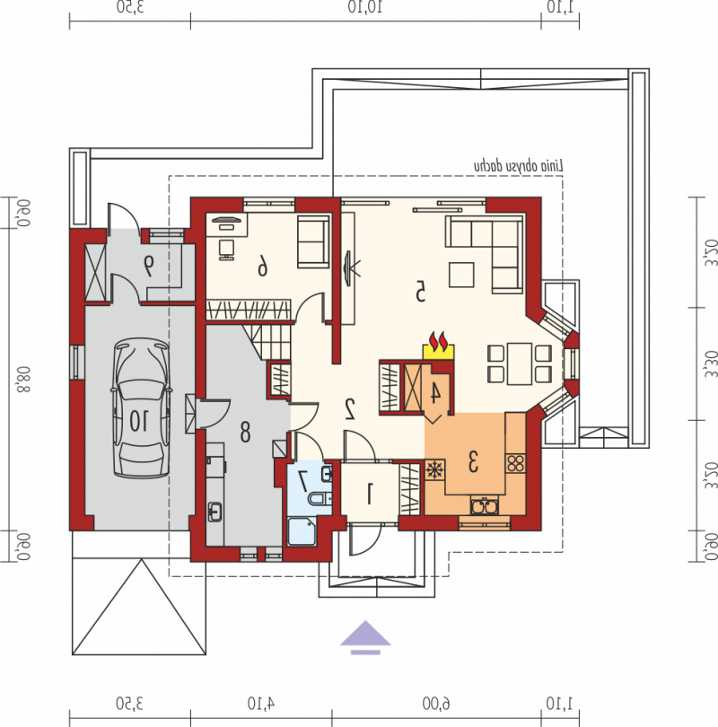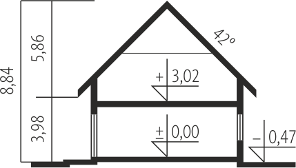 - Kąt nachylenia dachu 42.00°