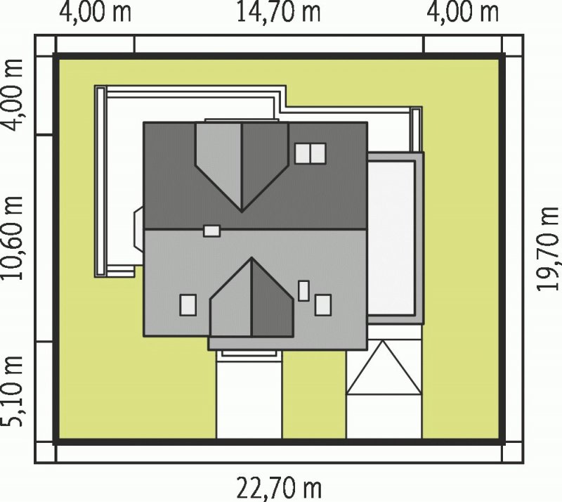 - Min. wymiary działki 22.70x19.70 m