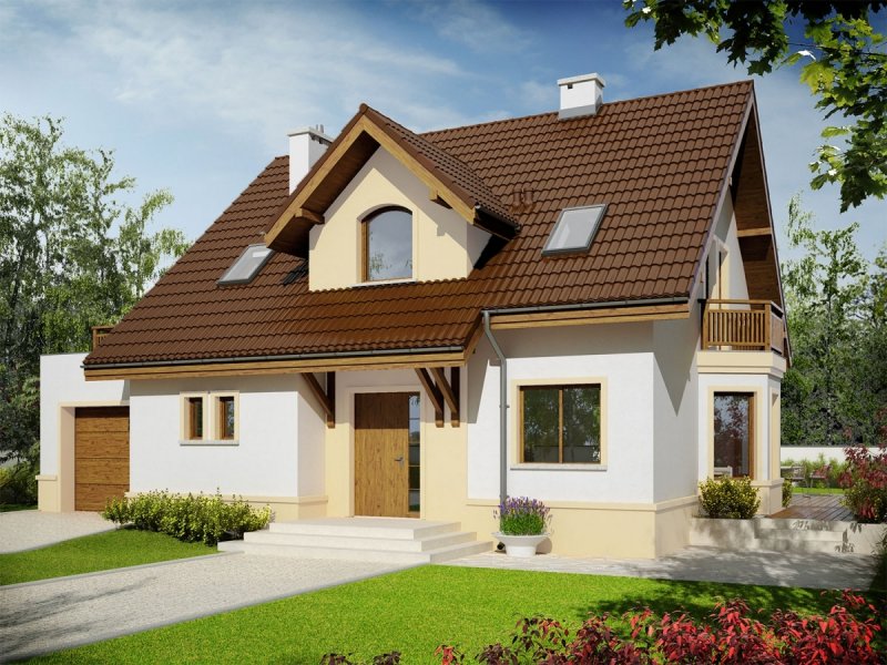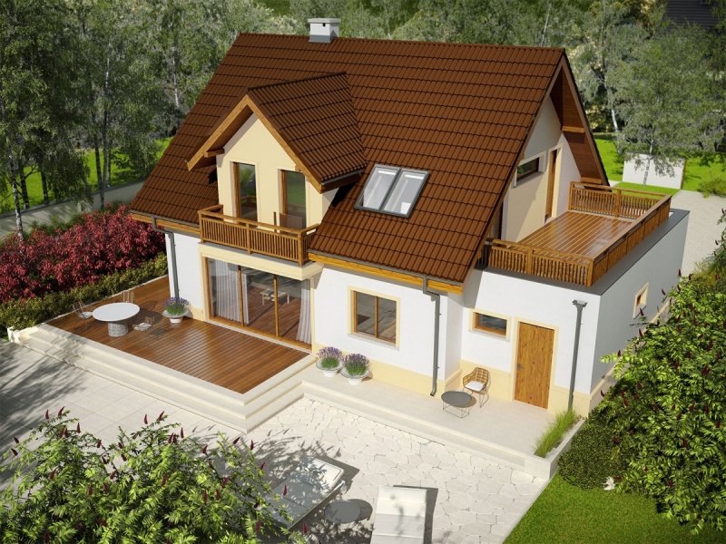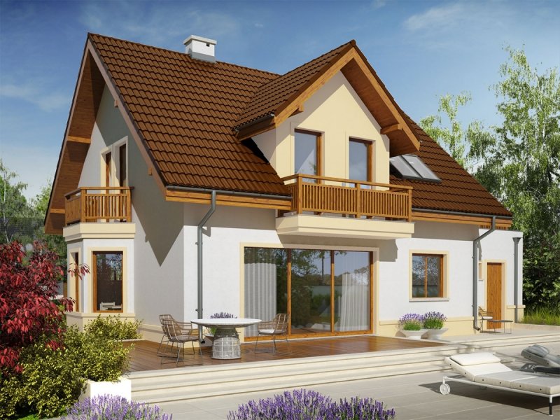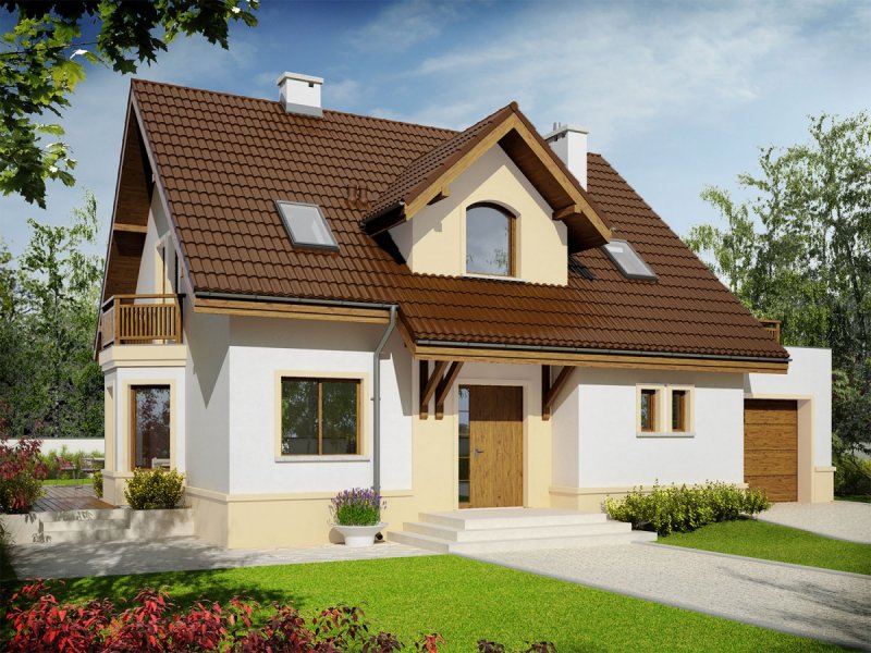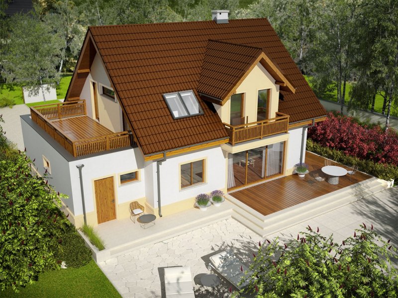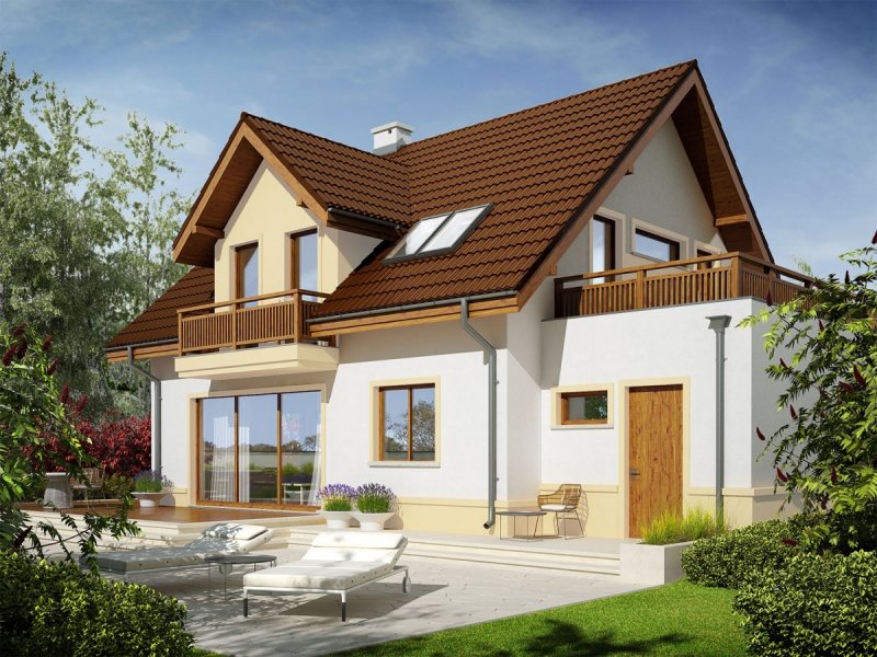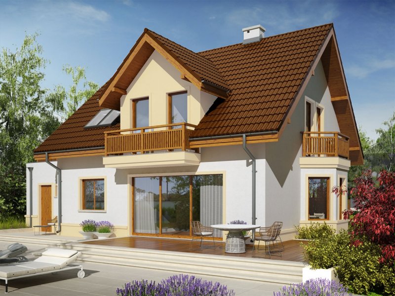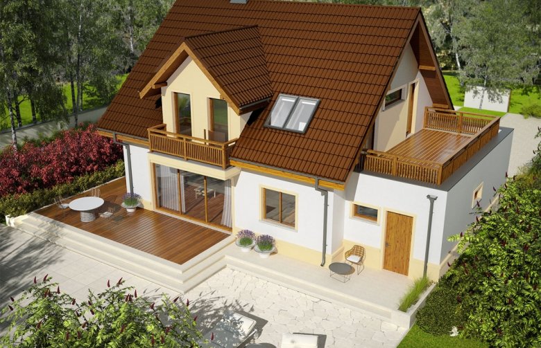 Mati III G1 Mocca to dom zaprojektowany dla rodziny, która ceni szlachetną elegancję i sprawdzone rozwiązania funkcjonalne. Klasyczna forma, wzbogacona o atrakcyjne lukarny doskonale prezentuje się w czekoladowo-waniliowej szacie, dodatkowo ozdobionej przez drewniane detale. We wnętrzu zaplanowano czytelny podział stref, który komfortowo rozdziela przestrzeń między rytm dnia i nocy, zapewniając domownikom codzienną swobodę i niezbędne poczucie prywatności. Ogromnym atutem projektu są rewelacyjne tarasy – idealne miejsce na relaks i rekreację z najbliższymi.