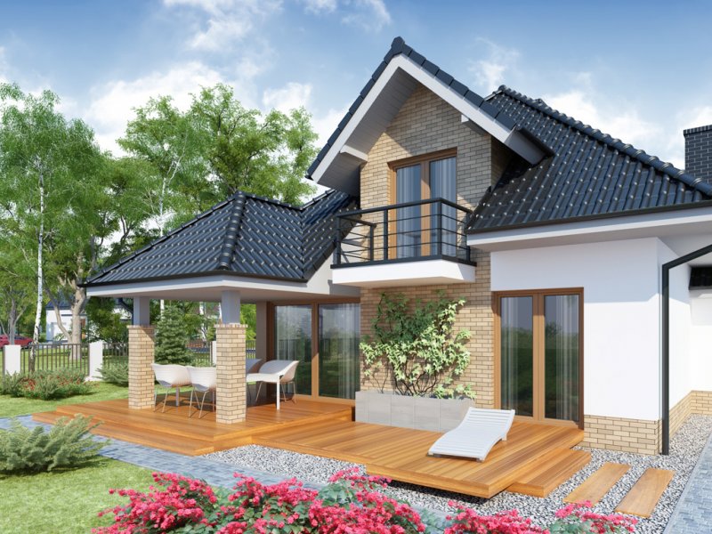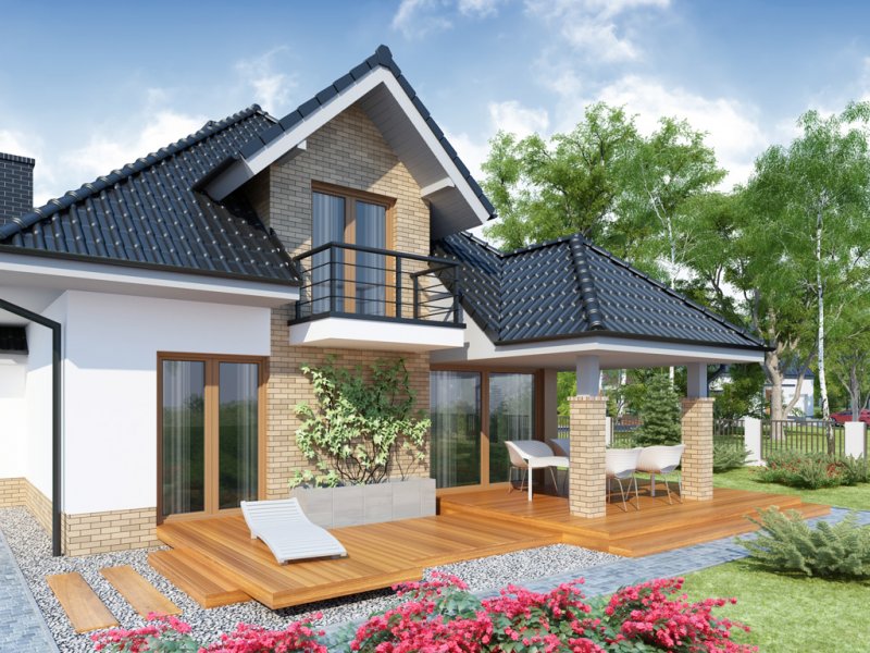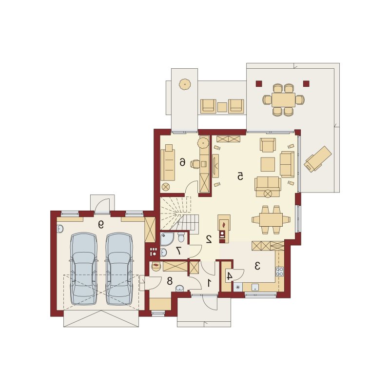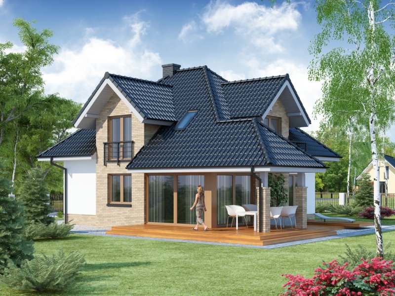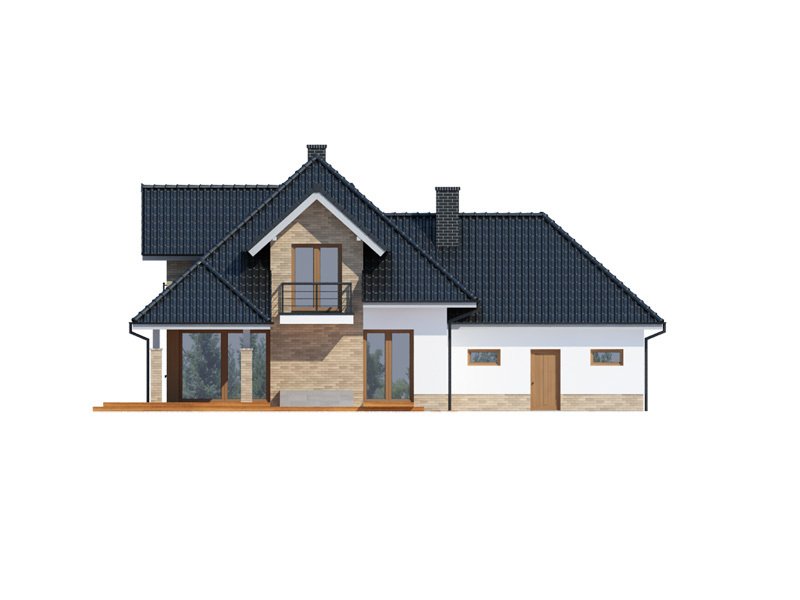 MEANDER 2 to dom parterowy z poddaszem użytkowym, zaprojektowany dla 4-5-osobowej rodziny. Wiatrołap z miejscem na szafę wiedzie do otwartej części dziennej (kuchnię można oddzielić od jadalni i salonu). Na parterze znajduje się też obszerny gabinet, mogący pełnić funkcję pokoju gościnnego lub kolejnej sypialni, oraz łazienka i spiżarnia. Poprzez wiatrołap dostępne jest również pomieszczenie gospodarcze i usytuowany za nim dwustanowiskowy garaż z praktycznym wyjściem do ogrodu. Na poddaszu znajduje się salon łazienkowy z wydzielonym aneksem na pralkę oraz trzy duże sypialnie, w tym jedna z własną garderobą i łazienką, a druga z własną garderobą.
