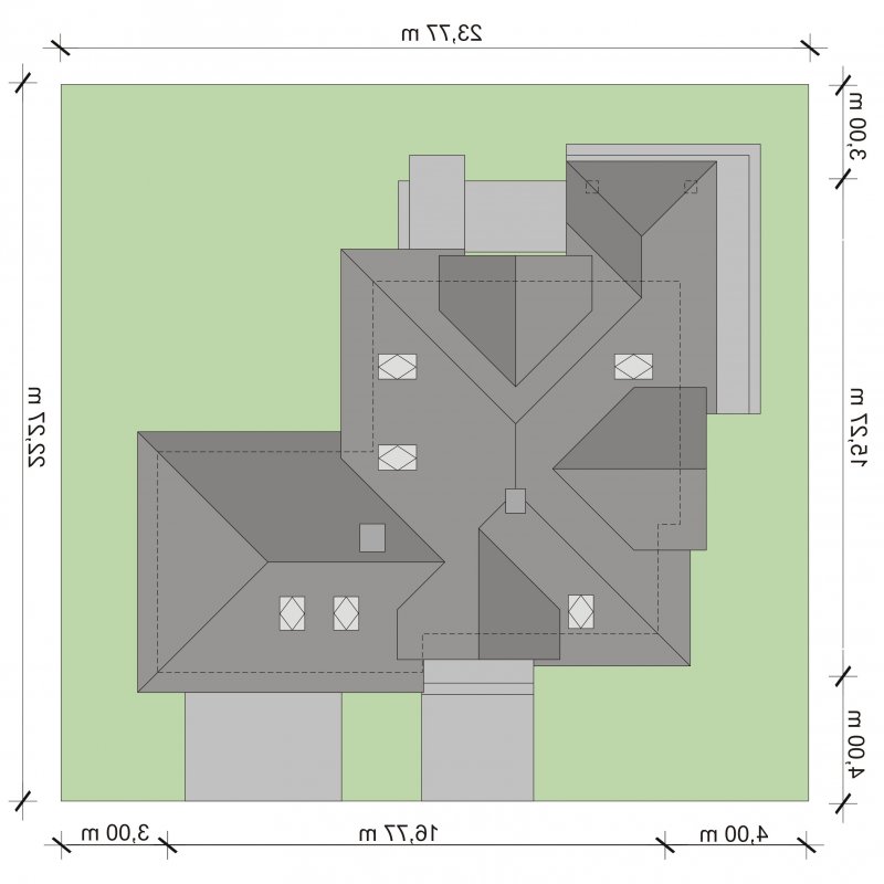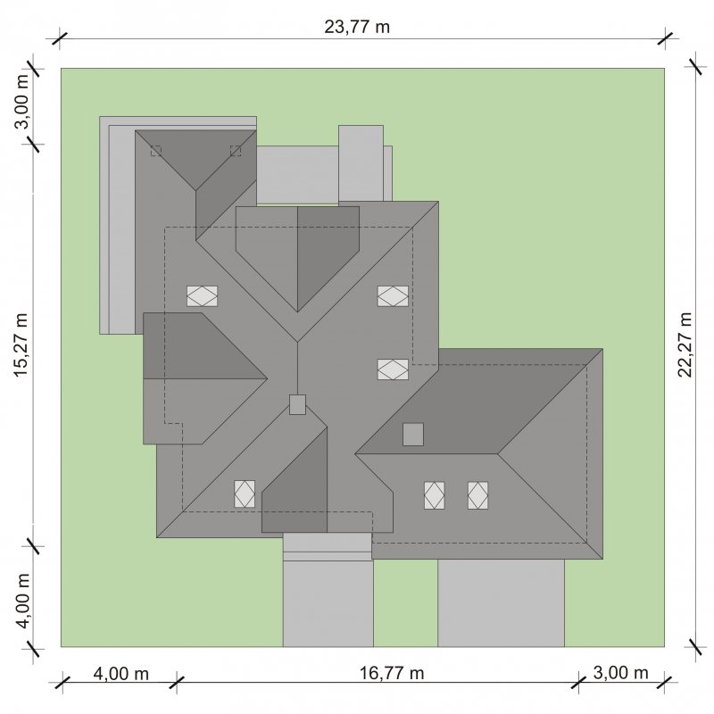 - Min. wymiary działki 23.77x22.27 m