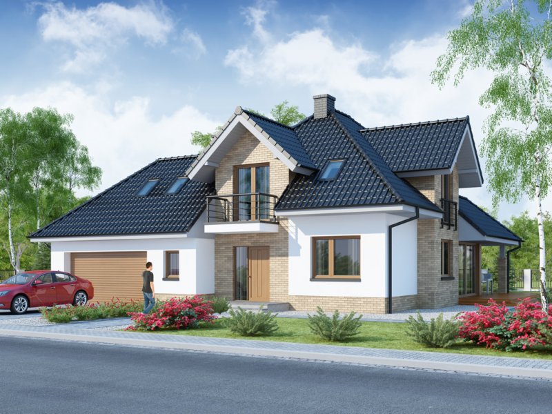 Projekt ma swoją wersję z garażem dwustanowiskowym MEANDER.