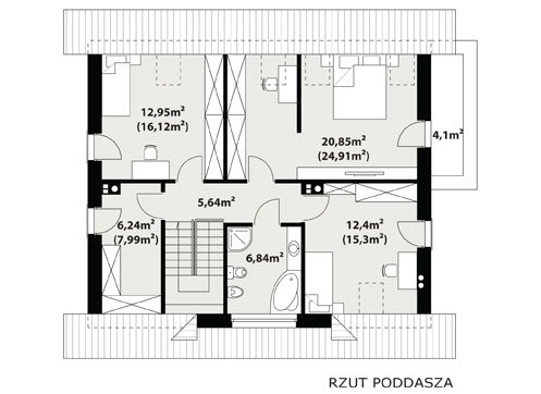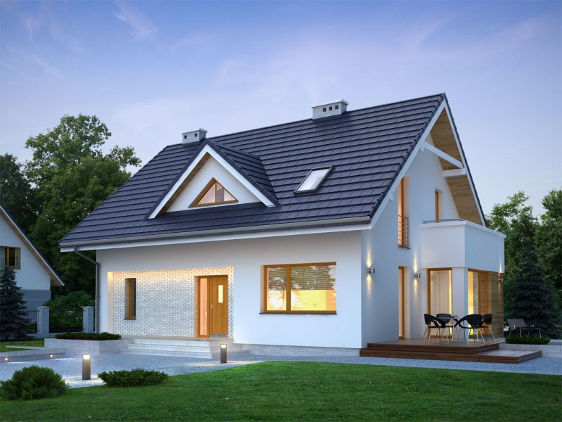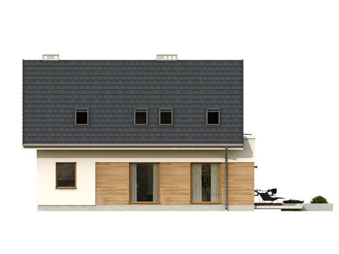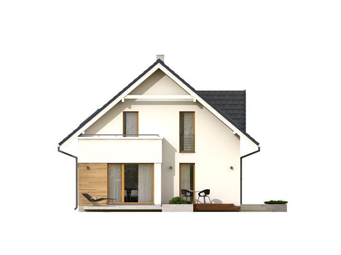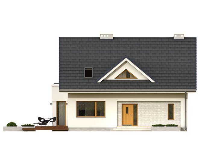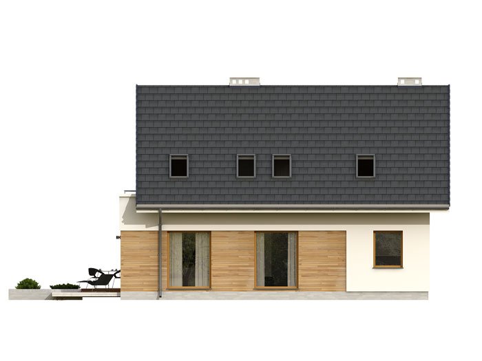 Jednorodzinny dom mieszkalny, parterowy z użytkowym poddaszem, niepodpiwniczony. Optymalny układ pomieszczeń zapewnia komfort 4,5-osobowej rodzinie. Ten wygodny dom ujęty został w prostą klasyczną bryłę z eleganckimi, nowoczesnymi elewacjami. Przestronna część dzienna na parterze, otwiera się na ogród poprzez duże przeszklenia w salonie, jadalni oraz kuchni, wzbogaconej o spiżarnię. Oprócz części reprezentacyjnej na parterze przewidziano również dodatkowy pokój, który można zaadaptować na gabinet bądź dodatkową sypialnię. Na poddaszu, w części nocnej zaprojektowano 3 sypialnie, w tym jedną z wydzielonym kącikiem do pracy, łazienkę oraz garderobę, którą w razie potrzeby można przerobić na pralnię. Dom posiada dużą kotłownię, która umożliwia montaż kotła na każdy rodzaj paliwa.