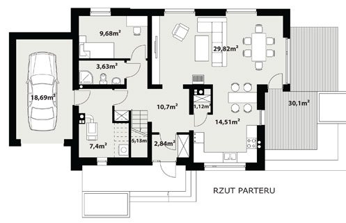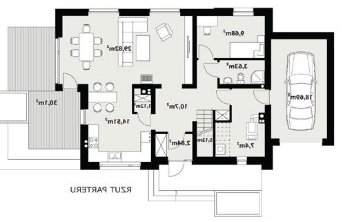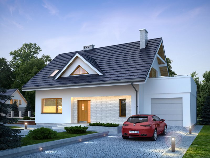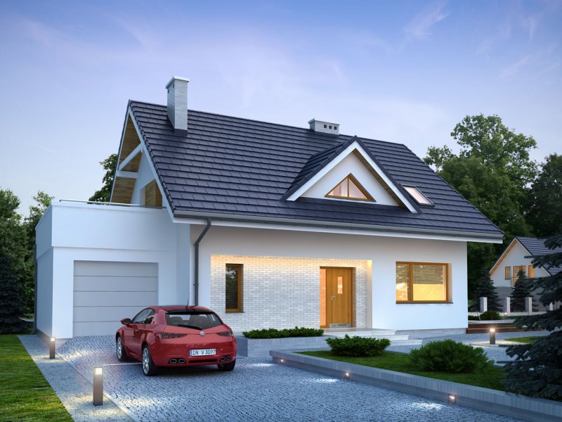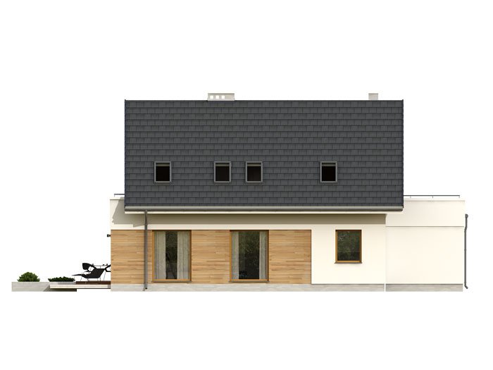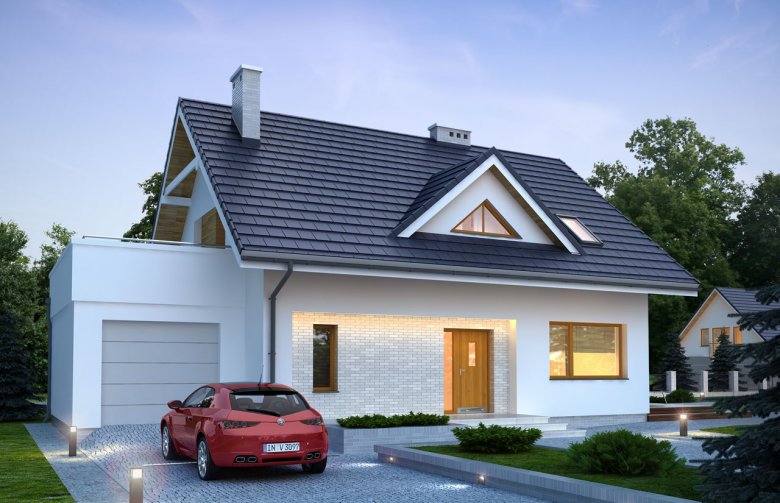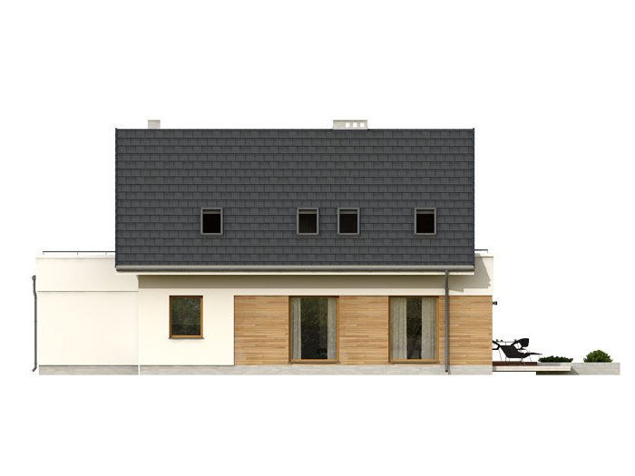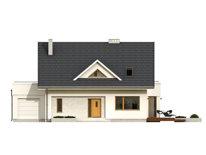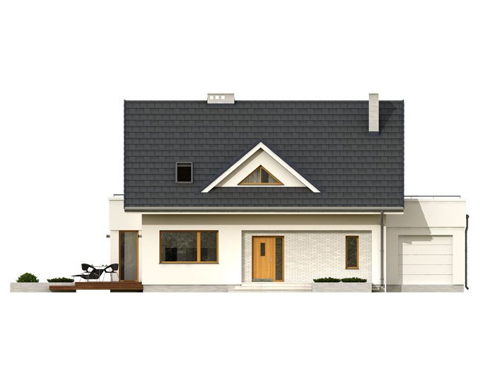 Jednorodzinny dom parterowy z użytkowym poddaszem, niepodpiwniczony z jednostanowiskowym garażem. Optymalny program pomieszczeń oraz jego układ zapewnia komfort 4,5-osobowej rodzinie. Ten wygodny dom to prosta klasyczną bryła wzbogacona eleganckimi, nowoczesnymi elewacjami. Przestronna część dzienna na parterze, otwiera się na ogród poprzez duże przeszklenia w salonie, jadalni oraz kuchni, wzbogaconej o spiżarnię. Oprócz części reprezentacyjnej na parterze przewidziano również dodatkowy pokój, który można zaadaptować na gabinet bądź dodatkową sypialnię. Na poddaszu, w części nocnej zaprojektowano 3 sypialnie, w tym jedną z wydzielonym kącikiem do pracy, łazienkę oraz garderobę, którą w razie potrzeby można przerobić na pralnię. Dom posiada dużą kotłownię, która umożliwia montaż kotła na każdy rodzaj paliwa.