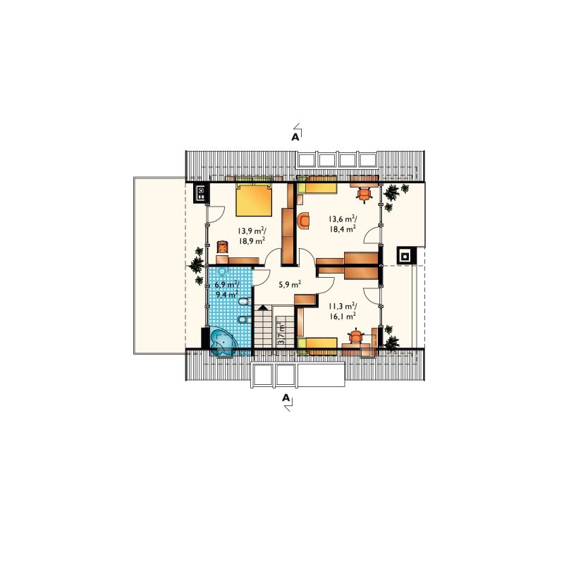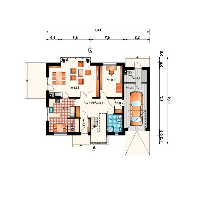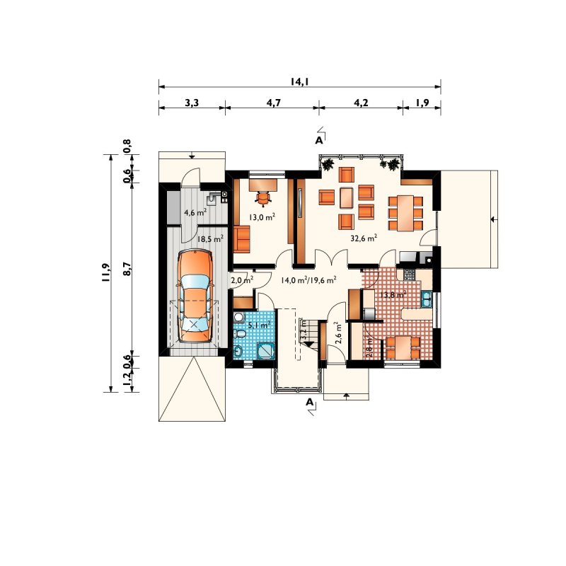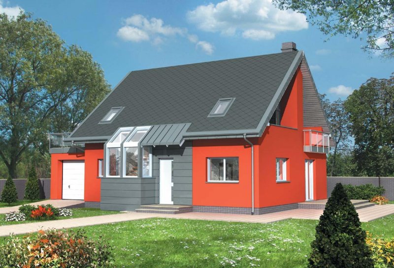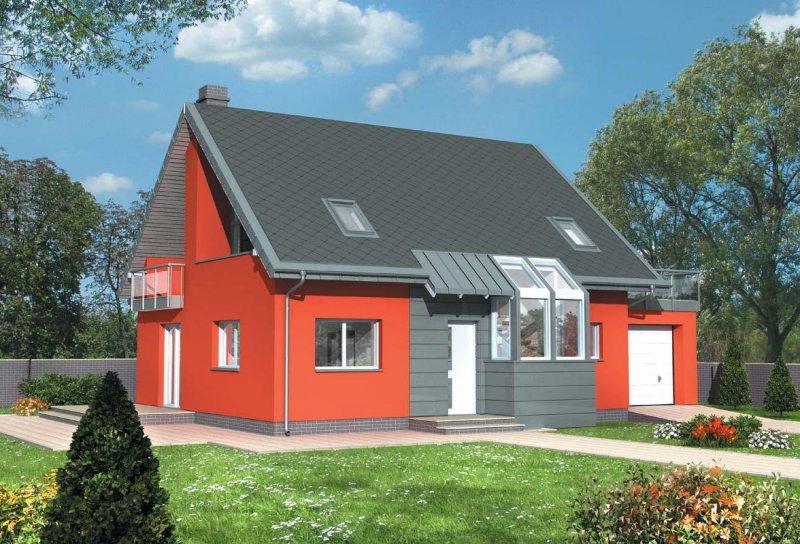 Dom parterowy, z użytkowym poddaszem, z garażem.