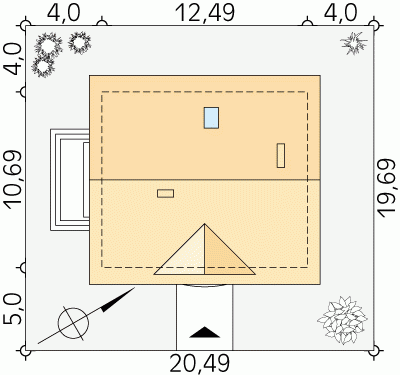 - Min. wymiary działki 20.49x19.69 m