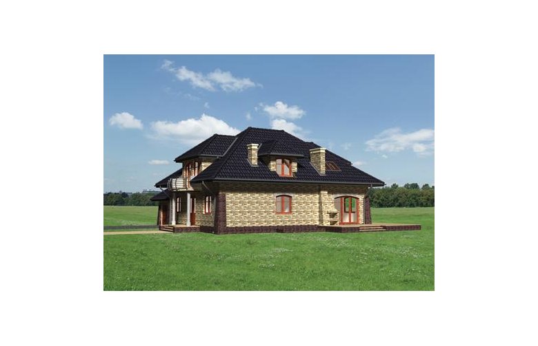Wejście przez sień do holu. Z holu na lewo dostępna kuchnia i jadalnia, na prawo pokój gościnny. Na wprost pokój dzienny i gabinet, obok duża łazienka. Schody prowadzą do piwnic i na poddasze. W piwnicach zlokalizowano pomieszczenia gospodarcze, kotłownię i pralnię. Na poddaszu znajdują się 4 pokoje sypialne, garderoba i łazienka. Piąty pokój dostępny ze spocznika klatki schodowej. Garaż dostępny także poprzez klatkę schodową. Obszerny, funkcjonalny dom dla dużej rodziny. Malownicze elementy architektoniczne takie jak: lukarny, kamienne przypory, łukowe formy okien i balkonów nadają budynkowi niepowtarzalny charakter.