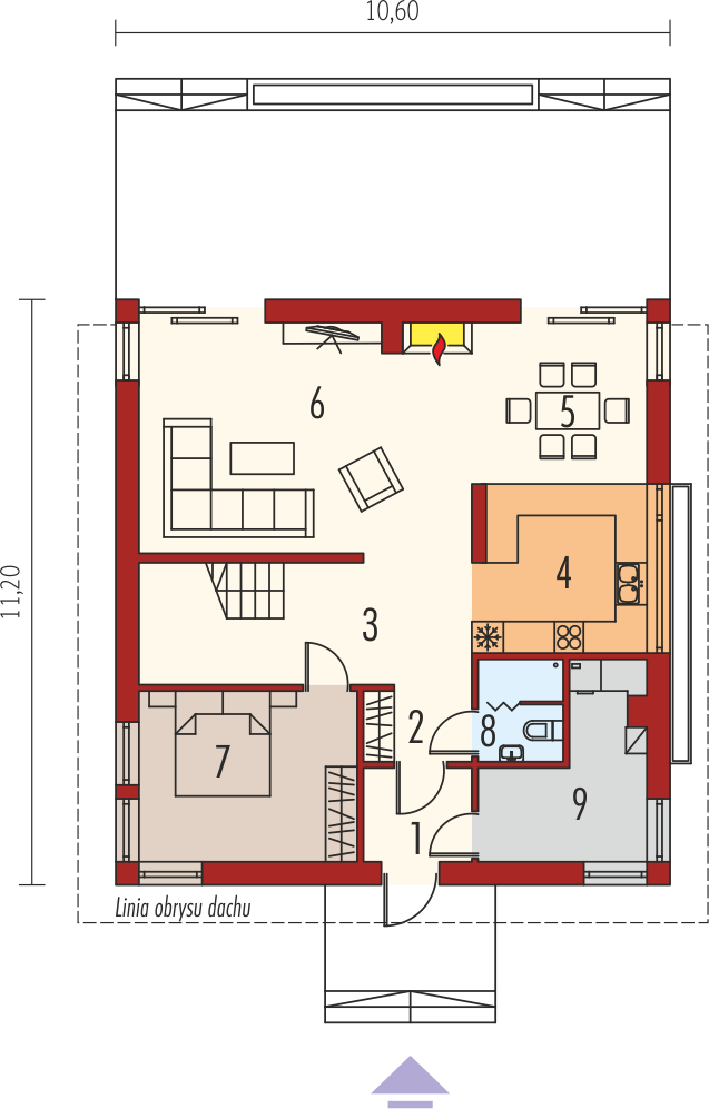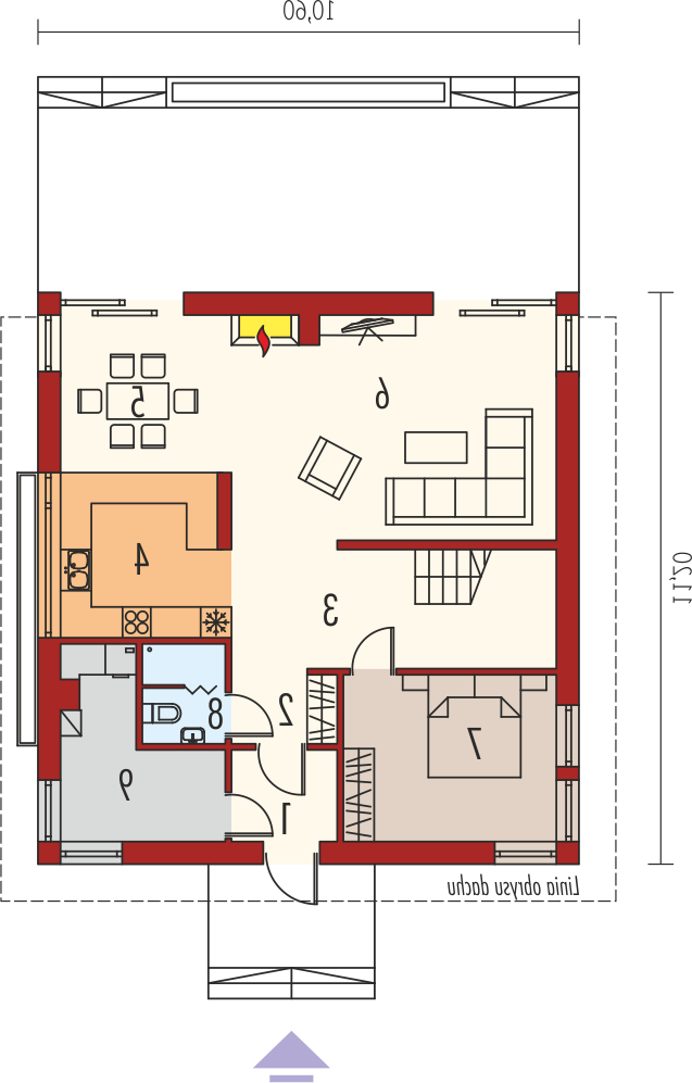 - Dach nad pokojem dziennym i jadalnią: stropodach pełny