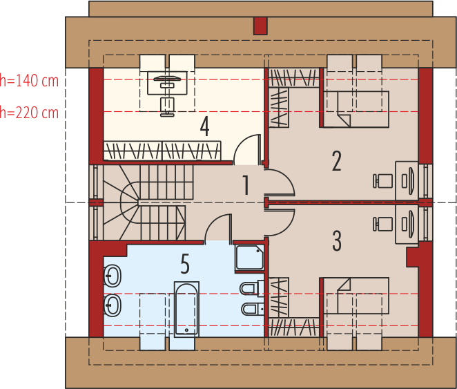 - dach i strop nad poddaszem – izolacja – 30 cm warstwa wełny mineralnej