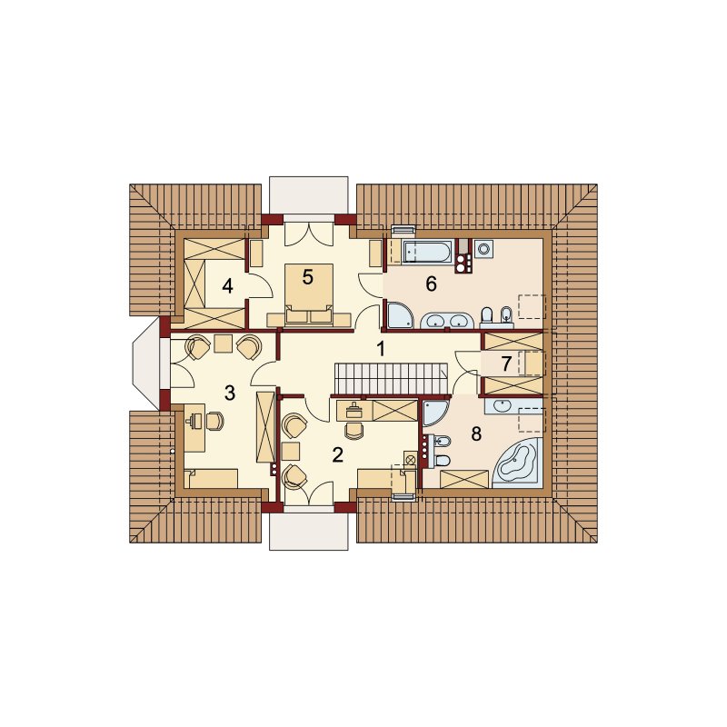 Proszę zwrócić uwagę na wygodne poddasze. Sypialnia z garderobą i dwa ustawne pokoje. Przestronna łazienka umożliwiająca lokalizację dużej wanny i kabiny połączona z pralnio-suszarnią oraz strych z możliwością zaadaptowania na gabinet lub pokój hobby.