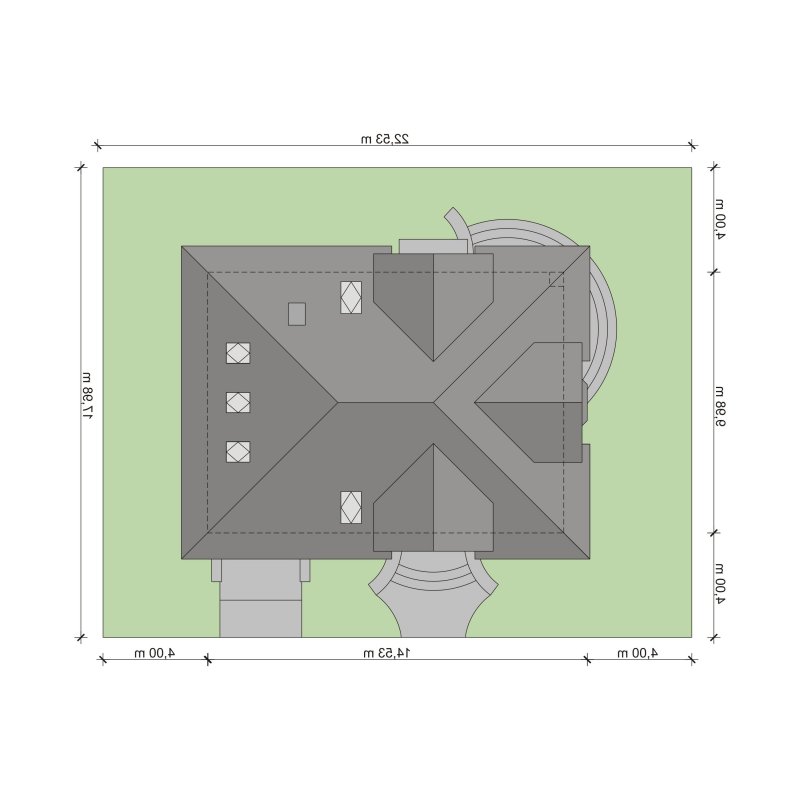 - Min. wymiary działki 22.53x17.98 m